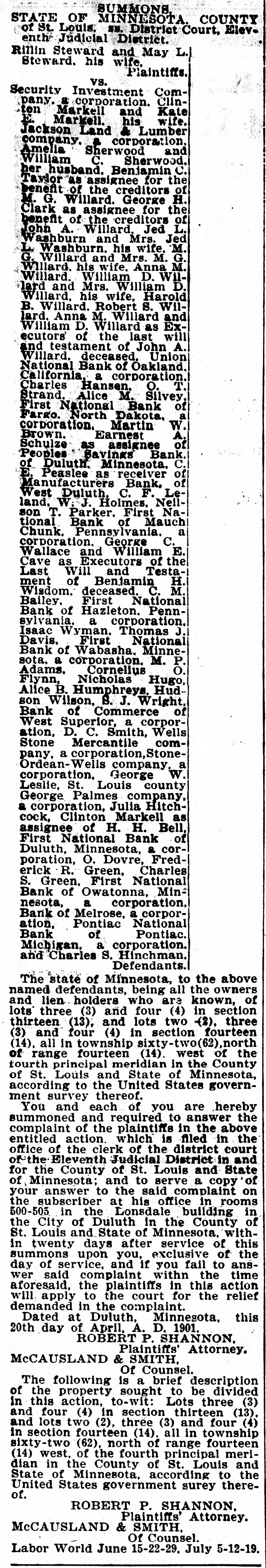 Dated at Duluth, Minnesota, this 20th day of April, A. D. 1901.