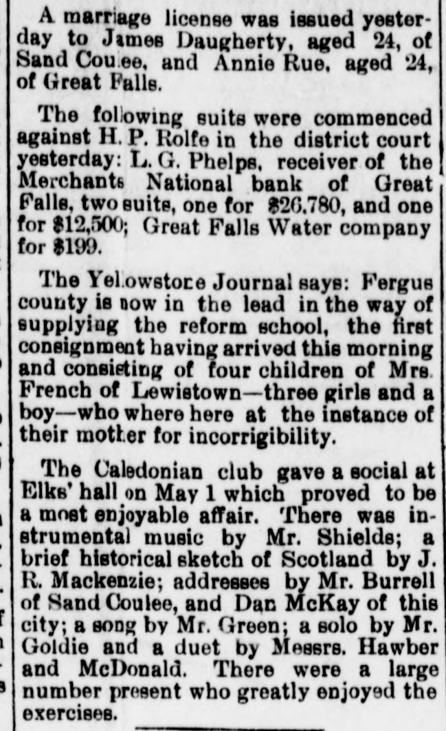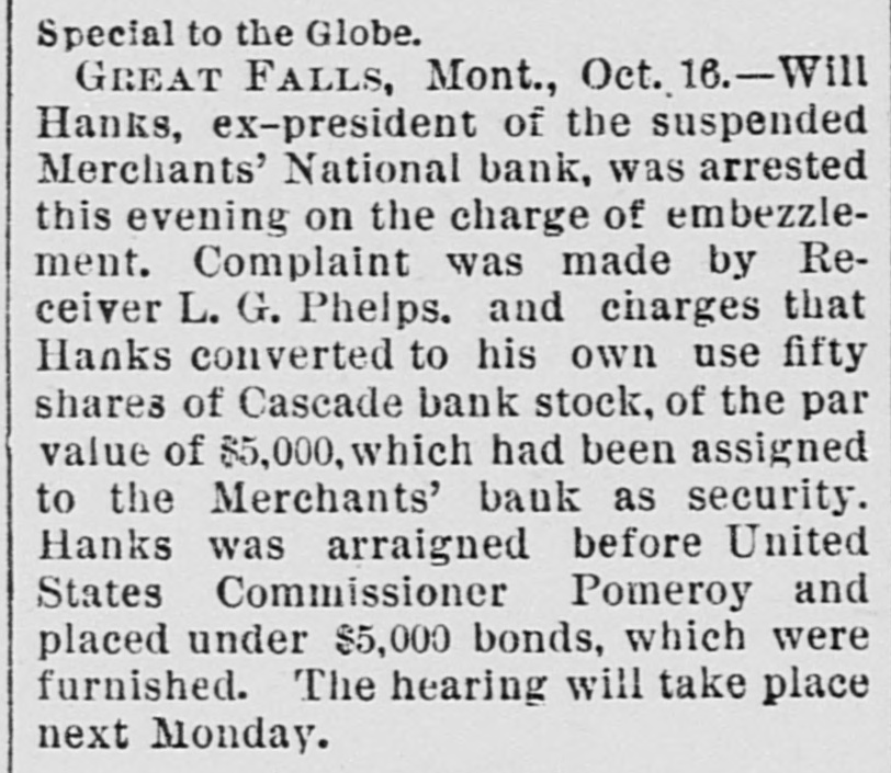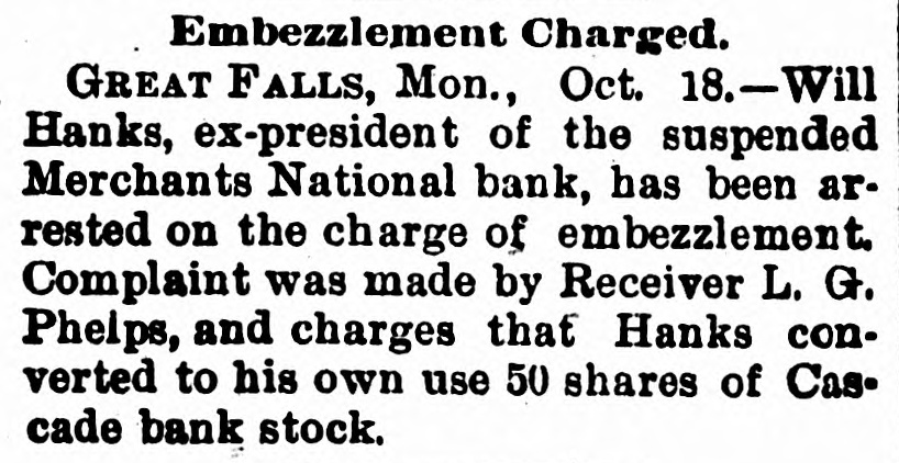 sion FIRE at Paulding, O destroyed the business part of the city Some thirty buildings were destroved The loss is $200,000. THE Merchants National Bank at Great Falls Mont. has suspended Over 870,000 in public funds are tied up in the bank. IT is stated that the Pennsylvania Railroad will use the long-distance telephonesinstead of the telegraph in hanlling trains. ED. MILLER and Amos Jefferson, both volored, quarreled over a game of eraps it Ottumwa, la. Miller shot Jefferson fatally and escaped. THE city of Managua. Nicaragua, has been bombarded by the revolutionists Minister Baker has sent a protest to the leaders of the revolution. Six HUNDRED unemployed men were fed at Denverb charitable people At the headquarters for unemployed, 1,000 men registered mone day THE Citizens' Bank at Connersville, Ind., owned by ex-United States Treasurer Huston, has failed. The assets are 500.000 and the liabilities $150,000 Officialadvie from Naples, received in Washington, state that cholera has appeared in the first-named city, holera also prevails in Senegal. Africa. a JACOB SUNDERLAND was running traction engine near Munie Ind.. when it went through a bridge He was scalded to death In the boiler's con tents GRESHAM denies that be will be a presidential candidate eyeland ill probably elevate him to the supreme bench INVESTIGATION shows that Shoemaker the killed the Lukens brothers at Me tropolis, III. did not commit suicide as reported. AT Friend Neb. Michael Kesler fired his son house in the hope of remating his wife, " the refused to sign mortgages Gov MARKH whas appointed ex-Gov George ( Perkins nited States sena for tosterced the late Leland Stanford, of California ANDREW SPEAR. negro living in Lima, 1.. shot his wife dead for talking. He then decamped with her body and has not been found THE heretofore thriving city of Pitts burg. Kas. contains 6,000 idle miners and has bee ruined by the strike urged on for political ends JoHN KRIDER a wealthy farmer was thrown from his wagon at Elkhart, Ind. and died later 111 the day of the injuries he received THE McKutchan carriage works at Princeton, III.. were burned to the ground. involving a loss of $20,000 and throwing out of employment over fifty men. DANIEL YOMINKLE well-known man of Chanderville, III.. drowned himself in the Sangation River at Virginia. No reason for his suicide is 1 nown LIEUT CLARK aged 30. son of Dr Mark of Baltimore, Md. was drowned at Fort Custer, Mont He was married about year ago, to Miss Elsie ( lemens, of St Louis OFFICERS of the Kansas Farmer's Alli ance have conceived the plan loaning wheat to destitute farmers until next year LETTER from the captain of the Alexandria totally disproves the rumor about the Mohican having been fired upon. LEE JONES of Indianapolis, convicted of the murder of Thomas Moody in 1872. has been pardoned by Gov. Mat thews. ARPER & BROTHERS hav cheen warned in secret service men not to portray government money on books published by them. CHARLES GREETON, year-old bicycle rider, was killed by falling over an embankment with his wheel near Lebanon. O THE engagement of Dr. Albert Shaw editor of the Review of Reviews, and Miss Bessie Bacon. of Reading Pa., is announced The jury at Fresno, Cal. in the case of Richard Heath. charged with the murder of L. B. MeWhirter, was unable to agree BANKER LITTLE, who killed Attorney Johnston at Kansas City Kas. has been held for murder in the first degree by a coroner's jury. Owing to the economical policy of the Nebraska legislature there are noappro priations to meet current expenses of state institutions Pessoxofficials in purging the rolls have ent off Supreme Judire Charles Dean Long. of Michigan, who lost an arm in the service THE steather Paris made the west ward run from Southampton to Fire Island in 16 days, 9 hours and 30 minutes breaking the record THIS Louis Wood and Pump Com pany has failed. ALL THE Banks at Gatherie, Ok., are experiencing runs. THE Yorktown has sailed from New York for the Pacific station Ix a fall from a scaffold at Elgin. III. Edward Dewel was fatally injured for A RECEIVER has been appointed Truth, the New York publication. THE Burlington Railroad decides on general reduction in its working force WILLIAM SCHW ARTZ because of domes tie trouble took poison at Decatur. III E. 11. TAYLOR, the Frankfort. Kv. distiller. made an assignment No figures. WELLS FARGO will establish bank in New York with a capital o Sweet Thesilves convention at Topeka, Kas is all but a failure. There is a scarcity of bigment THE First National Bank at Harrisot ville. Mo.. failed with $80,000 assets au $40,000 liabilities Miss WINNIE DAVIS is slightly ill Narragutsett Pier. but no apprehension is felt by her friends THE Hotel Vorcelli, at Boston has into the hands of an assignee The debts are $20,000 MRS W. HOLMES was buried a Mattoon III She was consin of John Bright English commoner. \ BOUT 1.00 boilermakers and helpers are off a strike at St. Louis for a nine