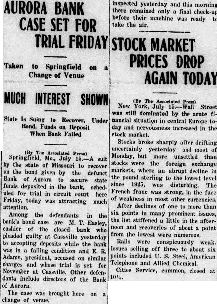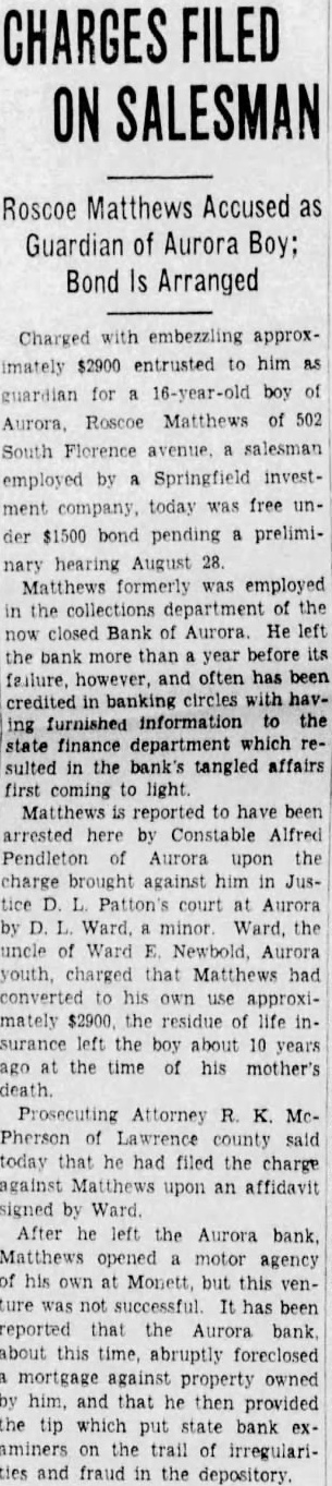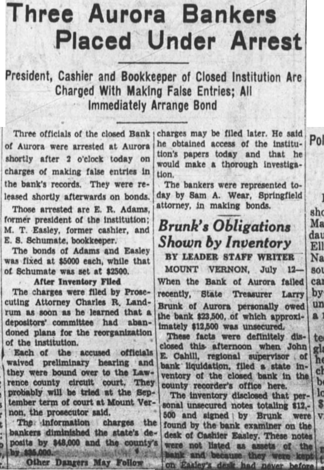MADDEN BANK RECORD SHOWS SIGNS OF ERASURES for Larry Brunk Attorney Charges Alterations in Ledger Sheets of the Aurora Bank.