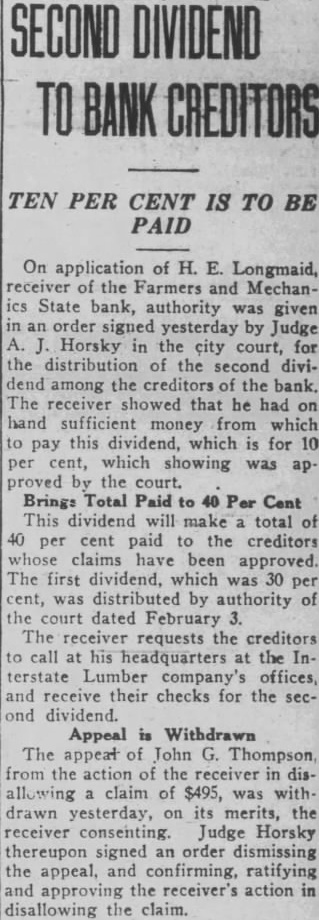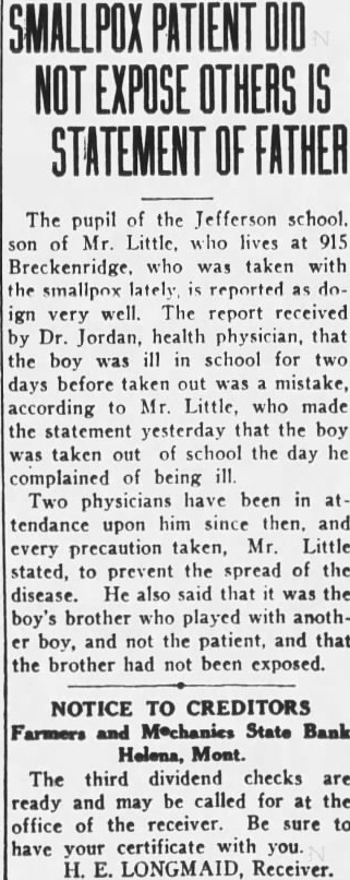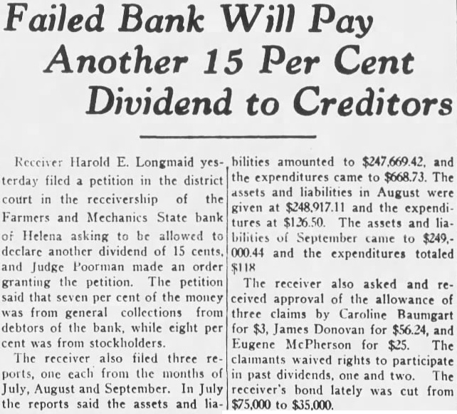 STATE BRIEFS Butte-Edward J. McCool foreman at the Steward mine, died at St. James hospital as a result of injuries received from a fall of ground on the 2,800-foot level of the Steward. Helena-Commutation of the sentence of William L. Hemmick of Carter county, as recently recommended by Governor J. E. Erickson, has been approved by the state board of pardons. Butte-A 10 per cent dividend of approximately $120,000 has been declared for Yegen bank depositors, according to a report filed with Judge William E. Carroll by Receiver Harry Hanson. Deer Lodge-Z. G. Coolidge in a heroic manner, saved James E. Penkake, flagman for the Northern Pacific railway at their crossing here, from serious burns when he extinguished the burning clothes of Mr. Penkake. Missoula - Vivian Corbly, journalism graduate at the State university of Montana in 1922 has recently been named national adjutant of the Disabled American War Veterans, according to word received here. His headquarters are in Cincinnatti. Fort Besten-John W. Tattan, age 79. judge of the district court and one of Montana's widely known pioneers, fell and broke his left collar bone while feeding his chickens. His chief regret was that he also broke seven perfectly fresh eggs. Helena-The request of the stockmen of Wolf Point and vicinity contained in a petition filed with the Montana railroad commission October 8 for enlarged and improved stock yards at Wolf Point, has | been concurred in by the Great Northern railway. Helena-Articles of incorporation of the North West Service Stores, Inc., have been filed with the secretary of state. The corporation is formed to engage in the retail mercantile business in Wolf Point, Glasgow and Plentywood, Mont., and Williston N. D. Roundup-Concern of a relative over possible propery loss to Eddie Green and sulted Tuesday in the arrest of Green and Mr. and Mrs. George Bennett and incarceration in the county jail with a charge of illegal possession of intoxicants placed against them. Helena-The Legal Tender Mining company has been incorporated with principal offices in Butte, according to articles filed with the secretary of state by the incorporators, L. M. Cobb, L. C. Chapman and Alex Walker all of Butte. The authorized capital is $250,000. Roundup-John Fink, a pioneer resident here, was found dead in a well at Carpenter Creek. He had been drilling a well there. It is believed he had been dead several hours before he was found. A paralytic stroke resulting in instant death is said to have been the cause. Helena-Harold E. Longmaid of the Interstate Lumber company, one of three who had been recommended by creditors and stockholders of the defunct Farmers and Mechanics State bank of Helena has been appointed receiver of that bank. His bond was fixed at $75,000. Missoula-Dr. J. H. Underwood of Missoula, one 0 fthe oldest faculty members of the state university in point of service, and author of note, an authority on sociological subjects and a representative of national and international societies died in a Washington, D. C., hospital a few days ago, Great Falls-An estate valued at approximately $308,300 was left by the late AnX drew Thisted, Great Falls merchant who y died October 12 according to a petition for probate of the will filed in district court by Mrs. Augusta Thisted, widow. The major portion of the estate consists d of real estate, located in Great Falls. a Roundup-To have traveled across Canale da to the Pacific coast and back through the United States as far as Roundup withdie,