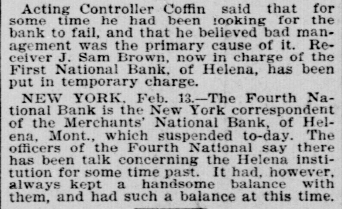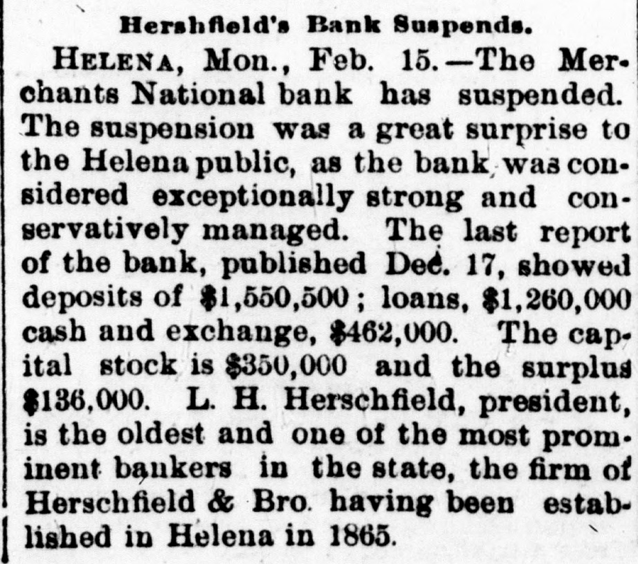 Helena, May 2-The idently of two of the parties indicted by the recent federal grand jury, whose indictments were placed in the secret docket pending their arrest, was made public to-day. They are L. H. Hershfield, late president of the suspended Merchants' National bank of this city, and T. P. Bowman, assistant cashier. Messrs. Hershfield and Bowman returned from the East to-day, having started for Montana as soon as they were apprised of the grand jury's action. Both presented themselves in court and their bonds were fixed at $5,000. These they readily furnished and were released, Sam Weinstein and C. D. Hard becoming securities for Mr. Hershfield and Jacob Yund, Sam Alexander, C. W. Dresser and Tom Cooney going on Mr. Bowman's bond.