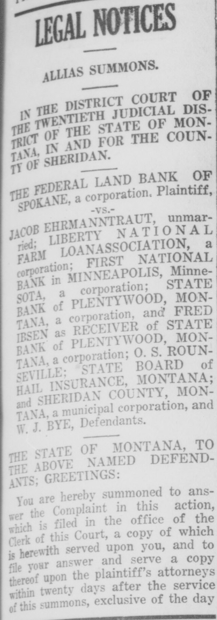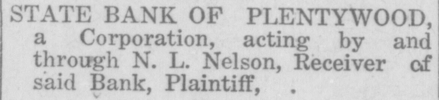 WAITING FOR CASH SAYS BANK OFFICER Information Unavailable As to Actual Status of the BankSome Think It Will Open Again Às Soon as Available Cash Can Be Secured. The State Bank of Plentywood ceased to operate as a bank Monday RAY WHITE'S CAR afternoon. It took deposits up until Monday noon, when it was unable to pay out any more money, even turnSTOLEN LAST WEEK ing down checks in the sum of $1.00. The institution then refused to take BUICK BELONGING TO LOCAL in deposits. and continued to refuse STATION AGENT MYSTERIOUSpayment upon paper drawn upon it. LY DISAPPEARS FROM GARThe doors of the bank, however, AGE. were not closed, nor were any representatives of the State banking deBetween Thursday evening and partment in town, nor has any repSaturday afternoon of last week, the resentative been in town since. as far 1921 5 passenger Buick belonging to as can be learned. The excuse given Ray White, local depot agent, was out by employes of the bank for the stolen from the garage at his home. nonpayment of orders, was that the According to reports, Mr. White bank had run out of currency, but had not seen the car since Thursday that payment would be resumed night and after the snow storm of Tuesday morning, when the train Friday, figured that he might as well came in with a shipment of currency, take the battery out of the car as which Cashier N. L. Nelson was in he would not be using the machine the Twin Cities arranging for with any more this winter. Upon going to the Federal Reserve Bank. Tuesday the garage he found the car had been morning passed, Wednesday morning stolen from the garage. came and no currency arrived and the Mr. White notified the Sheriff's ofbank did not resume payment or the fice of the loss of the car and they taking of deposits. Still, however, the immediately got on the trail of the doors remained open and no officers thief and it is said they have a clue of the State Banking Department arto his identity and if he is captured rived. Neither did Cashier Nelson the officers believe it will bring out show up-depositors became panic same sensational developments. stricken. and Thursday morning all Mr. White purchased the auto from were convinced that something serithe Donaldson Garage two years ago ous had happened, although employes and the machine was in good condiin charge of the bank would not adtion. Mr. White, according to reports, mit that the bank had closed, but is very fortunate in having $1100 inclaimed that it was only in sort of surance on his car against theft, suspended animation waiting for which insurance will no doubt cover money when it would resume operathe loss to Mr. White. tion. Friday morning the doors of * * * * the bank opened as usual with all M'MASTER ORDERS CUT hands at service but Cashier Nelson remained absent and no legend ap* Huron, S. D., Dec. 6.-Gover* * peared, announcing the final closing of nor W. H. McMaster entered the * the bank. to break the suspense. gasoline war again here today * Monday morning, one of employes and ordered the sale of gas from of the bank appeared in the County * the state's station at the fair Treasurer's oflice and asked to ex* grounds at 13 cents per gallon. e (Continued on Page Four) * * *