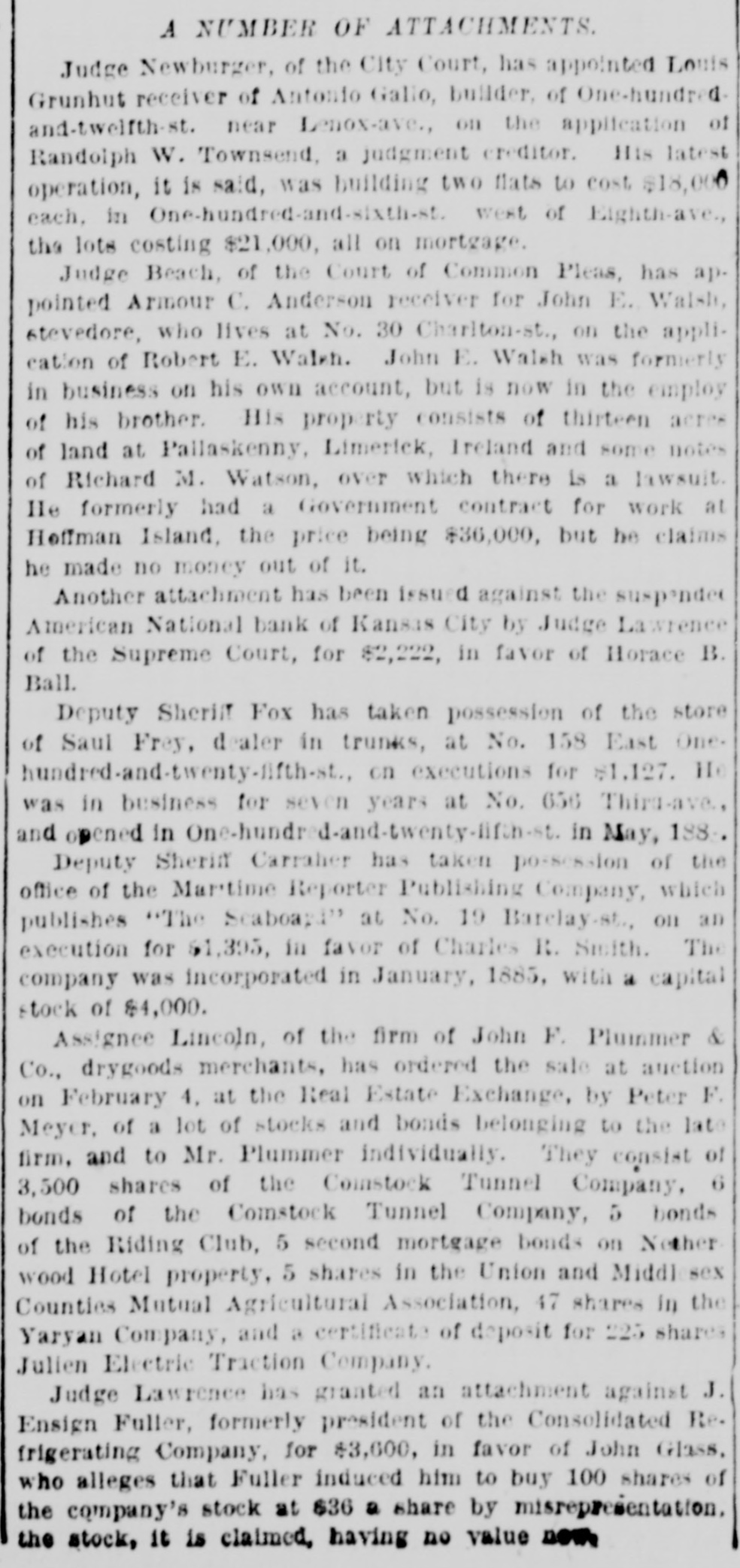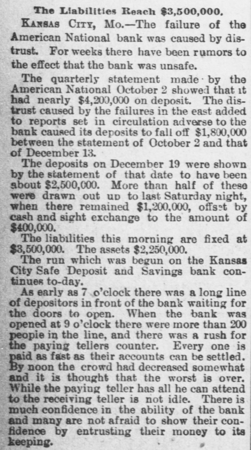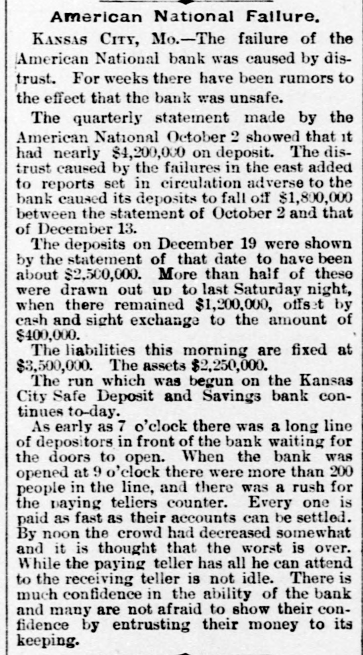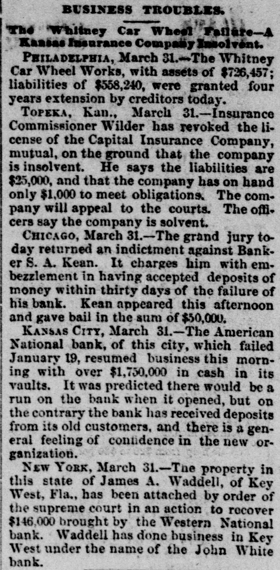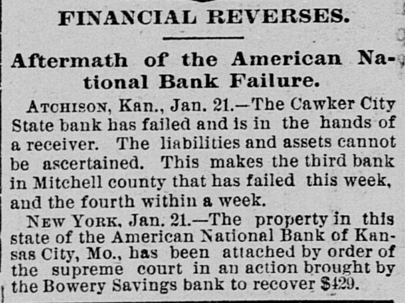 AN IRREGULAR PRACTICE.-Secretary Windom has informed Secretary Blaine, in regard to the practice of presenting invoices for certification at Paso del Norte. Mexico, covering goods shipped to the United States from other consular districts, that the collector of customs at El Paso, Texas, has been instructed to cooperate with the United States consul at Paso del Norte in enforcing the law upon shippers and carriers on the Mexican Central railroad and putting an end to said irregular practice. IN FAVOR OF THE GOVERNMENT.-The Treasury Department has authorized the free entry of three cases imported at New York addressed to the Secretary of State and containing copies of a volume of the survey of India, intended for the different departments, scientific NOcieties, educational institutions and libraries. As there is no provision of law authorizing the free entry of books for private persons the collector at New York has been instructed to collect duty on copies contained in the cases in question intended for T. W. Wright, civil engineer, Schenectady, N.Y., and Peof. J. E. Hilgard, late of the geodetic survey. To HONOR MR. BANCROFT.--The following order was issued today from the Executive Mansion: The death of George Bancroft, which occurred in the city of Washington on Saturday, January 17. at 3:40 o'clock p.m., removes from among the living one of the most distinguished Americans. As an expression of the public loss and sorrow the flags of all the executive departments at Washington and of the public buildings in the cities through which the funeral party is to pass will be placed at halfmast on tomorrow and until the body of this eminent statesman, scholar and historian shall rest in the state thatgave him to his country and to the world. By direction of the President. E. W. Halford, private secretary. THE KANSAS CITY BANK FAILURE.-Mr. Lacey, controller of the currency, received a telegram this morning from Bank Examiner Marshall announcing the suspension of the American National Bank of Kansas City, Mo. He said that he received word from the examiner Saturday that there had been a heavy run on the bank and that the situation looked serious. He added, however, that he did not think the bank's liabilities exceeded $1,000,000, which is $250,000 less than its capital stock. In reply the controller instructed him to take chai ge of the bank in case the run continued this morning and, judging from the fact that the examiner had taken charge, he supposed it had. The controller mid that while he bad no definite information on the subject he supposed the bank was suffering from its efforts to assist its correspondents in Kansas, four of which had failed during the recent stringency.