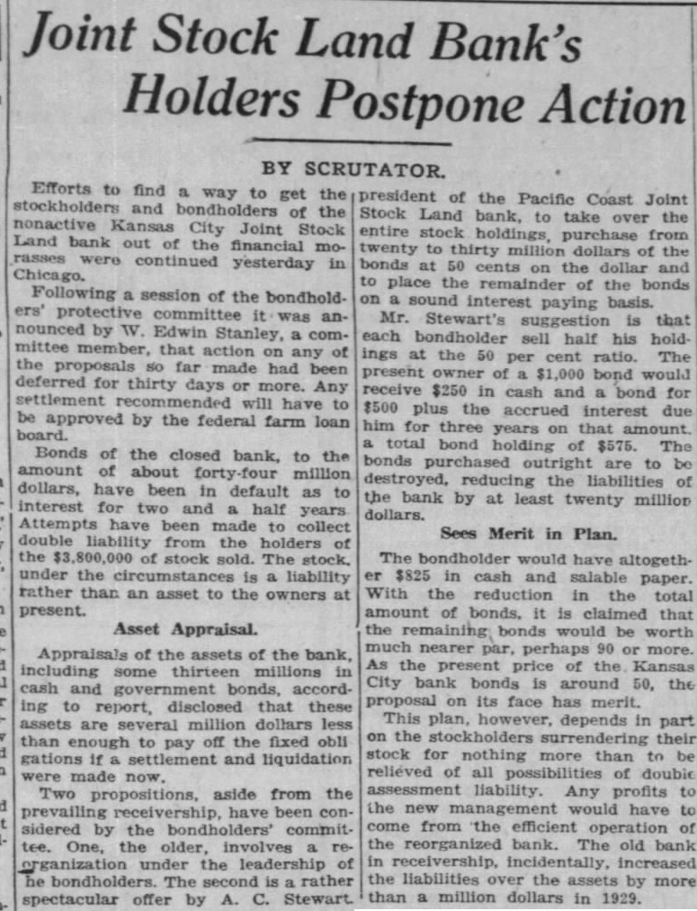 W. Cook to Kansas Electric Sec. 33, Twp. 31, Range Quit Claim W the Guarantee Title Trust Co., the GuaranTitle Sec. 21, Twp. Range Consideration Receivers M. Longworthy. receiver the Kansas City Joint Stock Land bank Kansas City, Mo., to Farm MortHolding Receivers M. Long. worthy, receiver the Kansas City oJint Stock Land bank Kansas City, Farm Mort Holding Sec. Two. 32. Range 19. W. Kraft Phenix Cheese Corp. of the South to Kraft Phe Cheese Lots 15, Block Johnson and Folks Oswego. Consideration $10 Brashear Hindes, Block Mound Valley. Consideration $1.