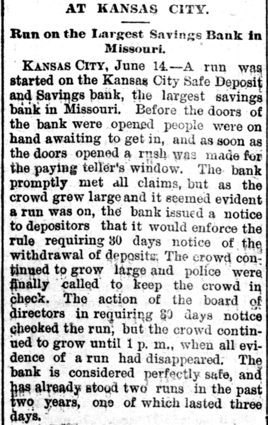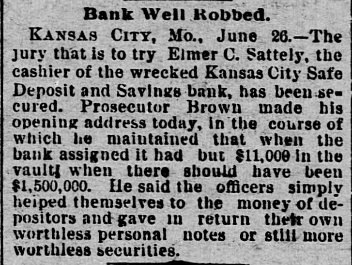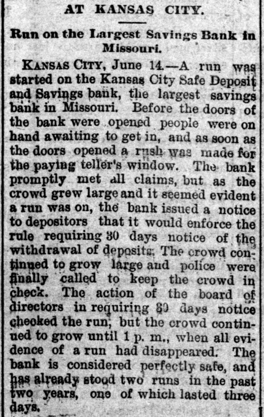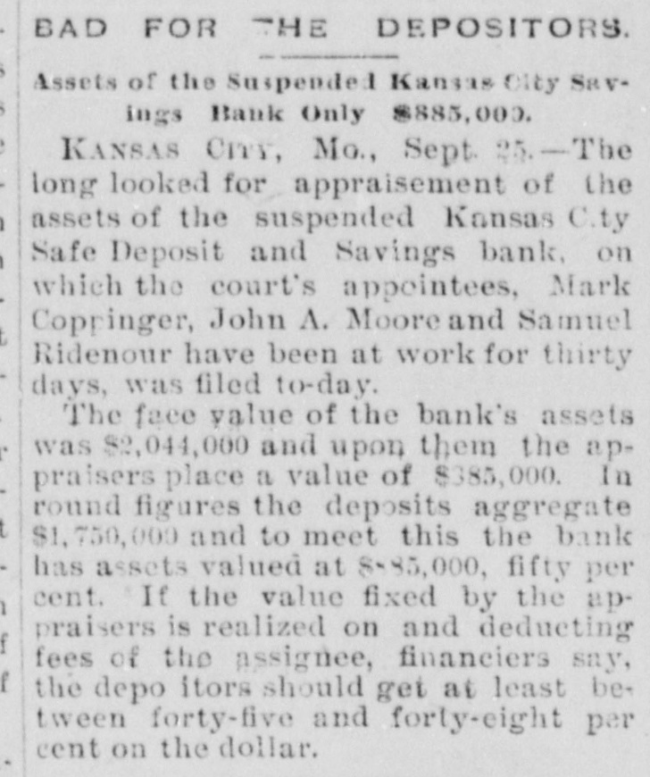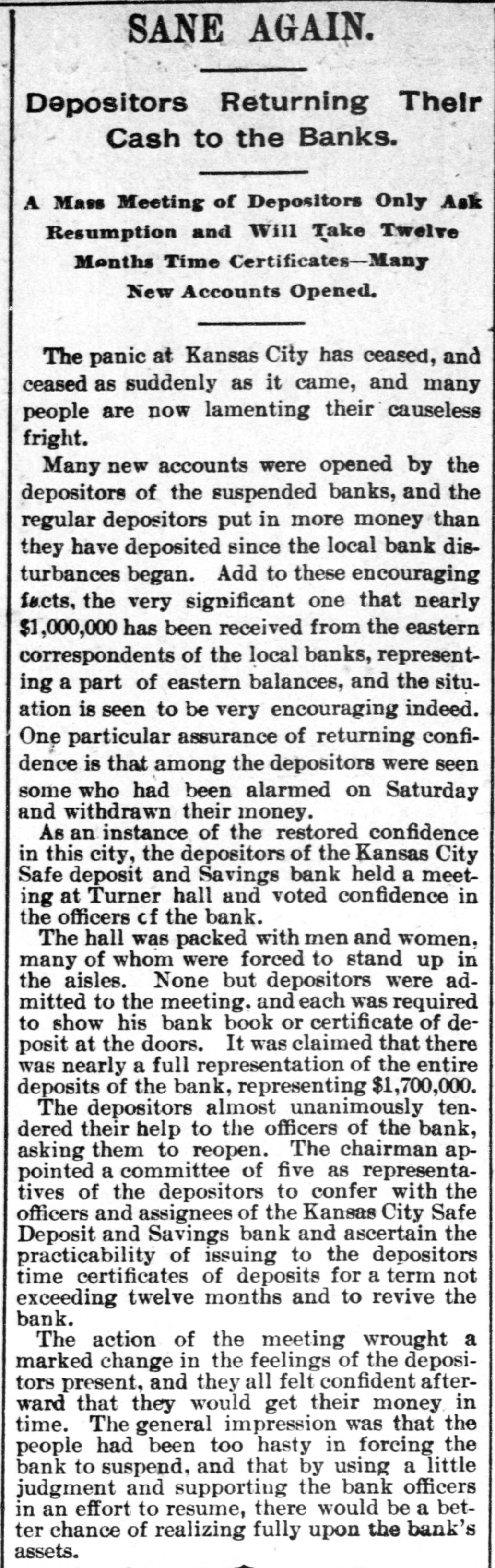 MISSOURI STATE NEWS. Awarded Damages. In the circuit court at Mexico Mrs. Mary F. Eagleton, of St. Louis, was awarded damages in the sum of $1,450 against George Kabrich, of Mexico, and C. C. Longley, of St. Louis. Mrs. Eagleton brought suit for $5,000 for alleged false imprisonment and malicious prosecution. In January. 1894. she lived in Audrain county and ran a dry goods bill with Kabrich & Longley of $35, and later attempted to leave without settling the account. Mrs. Eagleton was pursued and arrested by an officer, returned to Mexico, and confined in jail on the charge of obtaining goods under false pretenses. Being in & delicate condition she was afterward. under guard, moved to a hotel, where she became a mother. and the charge was withdrawn. The trial lasted two days. The verdict. jury was four hours deliberating upon the How Farmer Barnard was Robbed. David A. Barnard, who lives near Macon, was robbed of $85 and a certified check for $500 the other day. Barnard was on a train, and was approaching Kearney. He had been talking to Pearl Rodgers, aged 19, of Kansas City. As Rodgers got up to leave the train. he put his arm around the old farmer's neck and told him to try and get him a job, as he was an orphan. The pecketbook was slipped from Barnard's inside vest pocket. Rodgers was seen to run rapidly away. and. being suspected by officers of doing something wrong, was pursued and captured after a long chase. The check and money were recovered. Too Bad. Mr. and Mrs. A. H. Horn, of Steelville, went outing a few days ago, and it proved a very sad affair. Mr. Horn placed a loaded-shotgun against a ledge, and Mrs. Horn knocked it down. the charge entering her side. Mr. Horn ran for assistance. and on his return found his wife stil alive. In the presence of those who returned with him she kissed him good-by, sent messages to friends, narrated how the accident occurred and said her husband was not to blame. She died in two hours. In a few weeks she would have become a mother. Mrs. Horn was Miss Minnie Davis. a teacher in the public schools. and she and her husband, both young, were popular. Bank Directors Exempt. Judge Broaddus, in the circuit court at Liberty, decided in the case of C. A. Stevenau against the directors of the Kansas City Safe Deposit and Savings bank, which failed in 1893, that the attachments run by depositors on the property of the bank directors are invalid. Eight thousand depositors, holding claims against the bank, are thus without recourse at law. Killed His Son-in-Law. An old feud which had been kept alive several years between Joe Peters and his son-in-law, John Dudley, two farmers near Seymour, terminated the other day in a row over a load of hay. Peters drew his knife and stabbed Dudley four times. Dudley died the next morning. Peters is under arrest. Gov. Stone's Appointments. Gov. Stone has appointed R. C. Culver to be judge of the criminal court of St. Joseph; Thomas H. Ryan. police commissioner of the city of St. Joseph, to succeed himself, and Dr. E. A. Donelan, a member of the Missouri fish commission, in place of H. M. Garlichs, removed. A Human Torch. Henry Schwartz was fatally burned in Kansas City by gasoline exploding. He ran several squares with his clothes aflame, jumping from a second-story window. Only three weeks before Schwartz married his sweetheart, who came from the old country. His Identity Revealed. Ben Myers, arrested for participation in Chicago & Alton hold-up in which Engineer Frank Holmes was killed, near Carlinville, Ill., proves, it is said, to be Bernard Reinagel, of Manchester, St. Louis county, and well connected. Elocutionary Contest. The Epworth league of Centenary Methodist church, south, of Nevada, will give an elocutionary contest August 28, for a $125 gold and diamondset medal. The contest is open to all