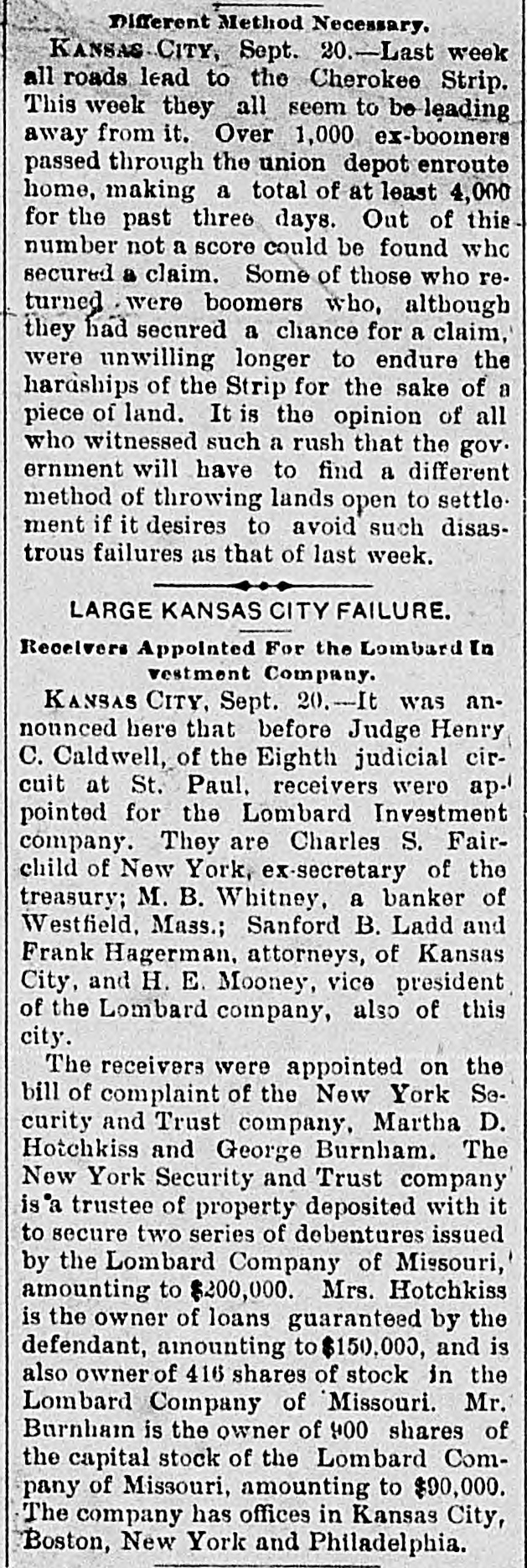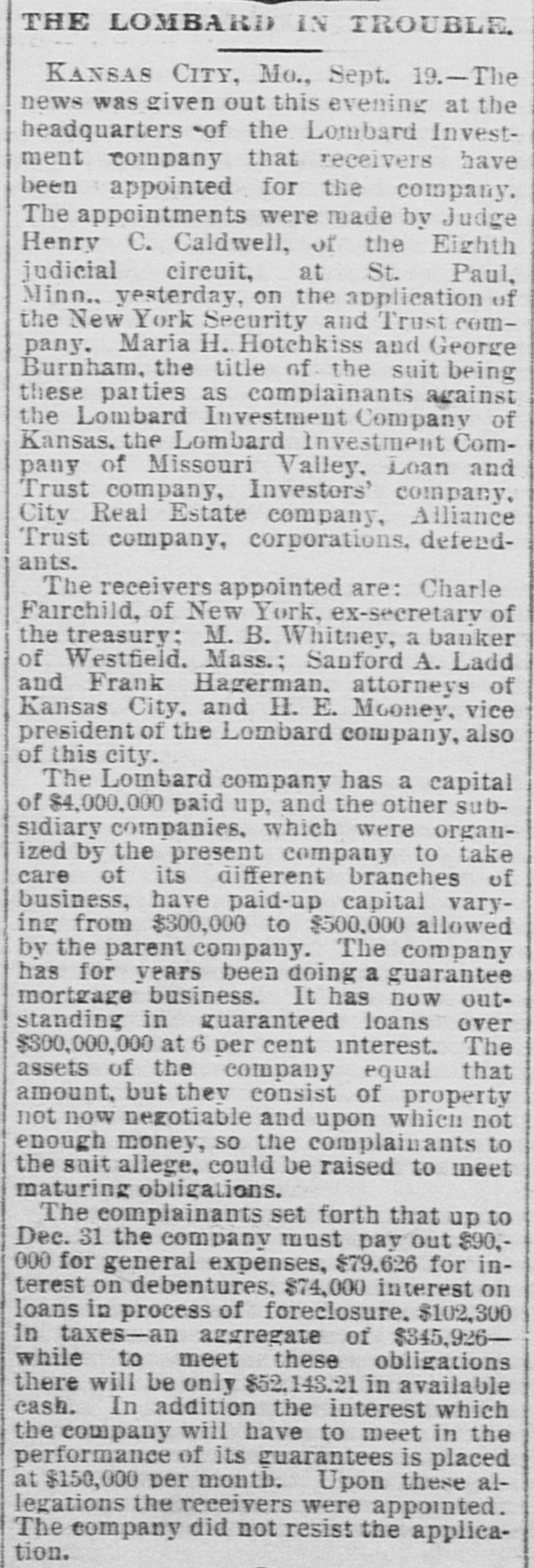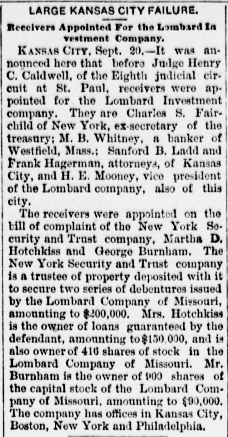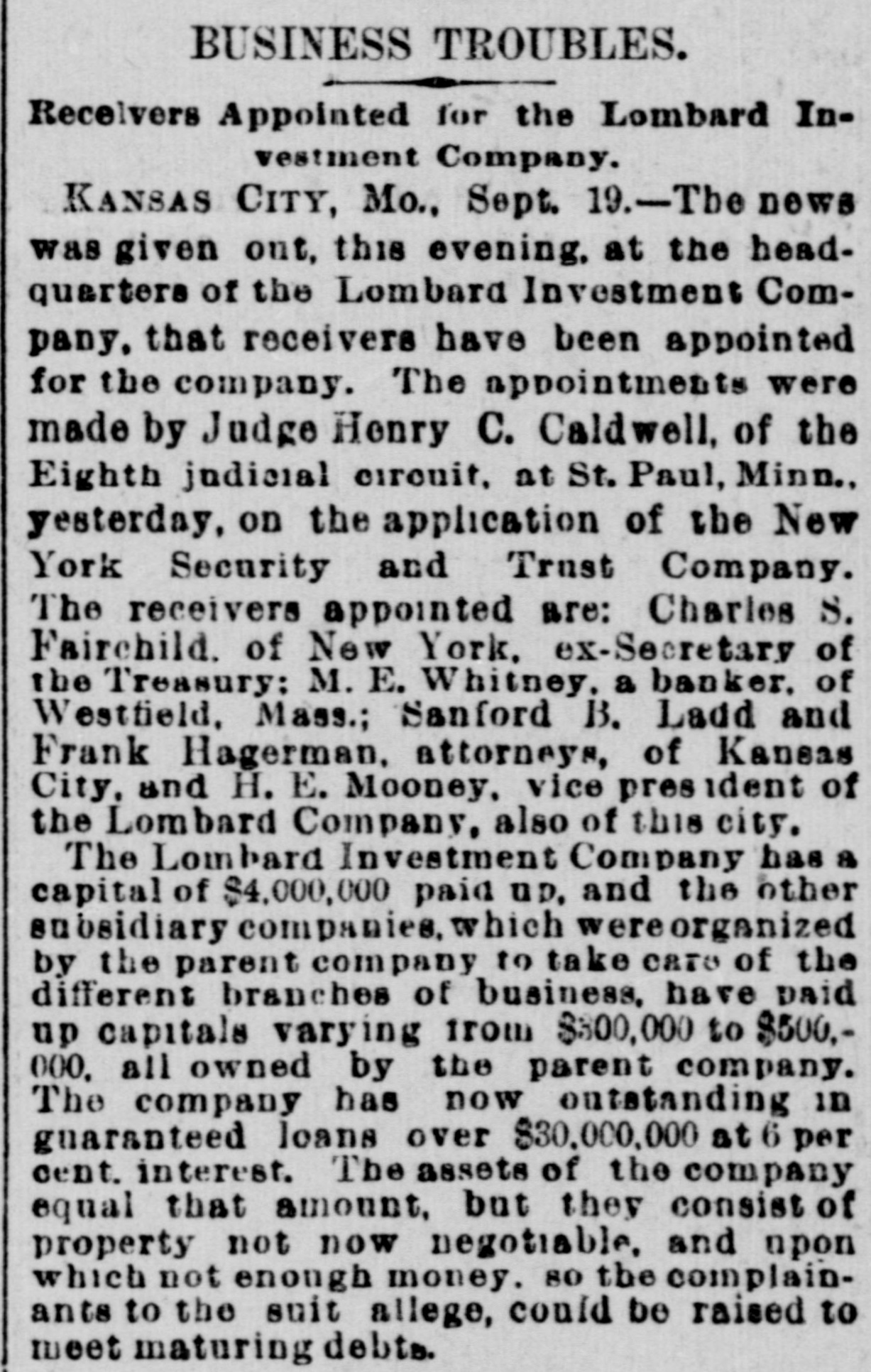 The Lombard Investment Company assigned on the 19th.