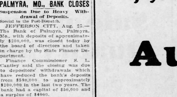 BANK OF PALMYRA CLOSED BY ITS DIRECTORS