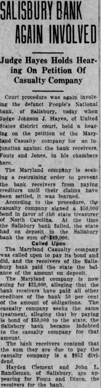 able in 60 days. Mr. Gregory testified that he did not receive cent for these notes, and that he had not paid penny or on the principal. admitting, however that he signed renewals the ing after the bank not notes on April 1922. Another high light in the proceedings was the of Smoot, cashier of the defunct bank who said that he gave the three Gregory notes, aggregating $15,000. Mr. Norwood on June 17. for collection, and that Norwood did not replace the notes, or pay anything them up to the time of the crash. He told of receipt signed by Mr. Nor wood, reading as follows "Received of Smoot, cashier three notes of Gregory aggre gating $15,000." (Signed D. Nor wood. An addenda on the receipt, dated June Mr. Smoot read follows: "I'll get you for cash of these this not for the three." Smoot further testified that no renewal notes were put the bank for the three notes after they were taken out and receipted for by Mr Norwood. Mr. Smoot. upon cross examination by Mr. Hoey. admitted that present when Norwood and Doughton were discussing the advisability of closing the bank. He also told of Mr calculat ing on prΓ©senting Rouser and Gregory notes as substitution the three Gregory notes for $15,000, but said that the beaccept the notes. He said he was present when Mr. Norwood offered these papers to Mr McLean, the ceiver, and Mr. Folger, the bank examiner. He also recounted discussion be tween Doughton and Norwood eral days before the closing of the institution, at which time, Smoot stated, Mrs. Norwood offered $15. 000 in stock of the Halifax Mills, of South Boston, Va., in payment for the Gregory notes, and this june ture Smoot admitted that this $15, 000 went into the bonk's coffers, stating that, "as understand it. the stock was given to Mr. Doughton.' When questioned as to the rela tified. in his justification of the loans made to the mills. He said that the mills at this time are solvent, from the standpoint of assets and liabilities, and that had 25 per cent of their value been realizable in cash that they would never have been forced receivership. BOUGHT IN INSTALLMENTS On cross examination by District Attorney Linney, Norwood admitted that the mills were originally bought the installment plan: cash and mortgage for the Clyde mills; cash and $300,000 mortgage for the mills; cash and $270,000 for the Newton Mills, and that the Nancy mills were bought from receiver for $30,000 and about $150,000 spent on improvthese mills Mr. Norwood said he did not know until yesterday that the direct, direct and affiliated liabilities of his to the bank amounted to over $500,000. He denied going to people Salisbury and offering them stock the mills, only to get their notes put in the bank and he said that did not tell them they would not to pay for the stock. He said he could not remember selling in the mills stock to L. Daniels, negro, of Salisbury, claiming he did not know Daniels: remembered selling $6,000 to H. Fiarley, but he could not recall selling $10,000 stock to Hancock. but did not deny that he did. When asked by the district attorney if had been loaned by the Peoples' bank, secured by stock which he, Norwood. was paying interest the time the bank failMr Norwood replied: would not say did not don't know. He admitted that he was in the bankrupt court, and that the schedof his assets showed $700. but on re-direct examination conducted by Clyde Hoey, of defense counsel, be said that most of his assets consisted of stocks, which had been put up as collateral for loans THE GREGORY NOTE