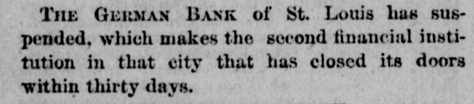THE GERMAN BANK of St. Louis has suspended, which makes the second financial institution in that city that has closed its doors within thirty days.