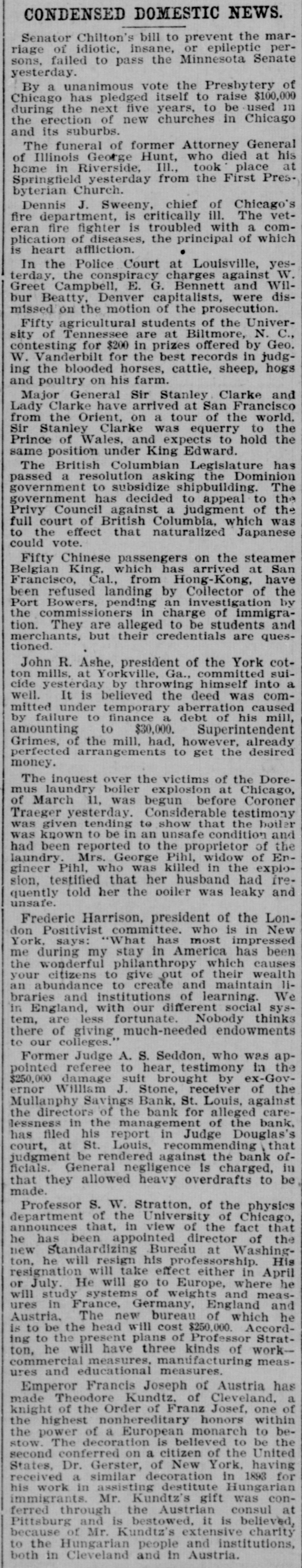 # CONDENSED DOMESTIC NEWS.