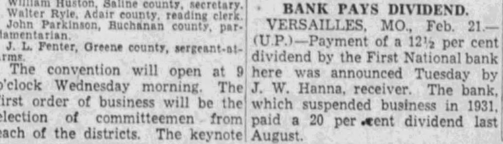 developed from the constant bombardment victim's body by alpha particles emanating from the radium stored in the bones, he plained This suggests methods for producing cancer But more important it suggests that, since very small of radium taken into the bodies of the watch dial painters quickly produced cancers, the other forms of cancer in man may be the result much smaller amounts of radioactive present in the body over much longer of time These be too small to measure or even to detect by present Getting tired of waiting for the rabbit the Bob Cat had come to look for him. "What have you in that basket?" snarled the Bob "Carrots! Nothing but carrots answered Uncle Wiggily politely "Take look and see for yourself, he invited, raising the cover. And no sooner had he done that than something alive jumped out of the basket. the Bob Cat on the and cried "Boo!" ran the Bob Cat frightened by Uncle Wiggily's surprise basket Oh, you want know who jumped out, do you? Well, was Baby Bunty She had happened and, seeing the empty basket she filled it with and then in herself, she fell asleep But she in time jump out and surprise the Bob Cat. Tomorrow Uncle Wiggily and Kittie's Piece. RUN CLOSES BRUNSWICK BANK. A Depository at Versailles, Mo., Also Fails Open. (By BRUNSWICK Mo., Oct. National Bank here failed open today the fourth Chariton County bank to since September 23, when the of Brunswick failed here. First National Bank had of $388,207.11 and deposits of $249,626.03 Steady withdrawals the reason for closing Plans are under way reopening the bank soon and officials of the bank say there will be no loss VERSAILLES Mo. Oct. First National Bank of Versailles was "closed by order of the board of directors today W Buell was president and Beatrice Sherill cashier CHICAGO SCHOOLS AT CRISIS. Teachers, Unpaid. Talk Move to Close Them November CHICAGO Oct Side school teachers, after told today their chances of getting financial relief through bond issues were small, referred to committee proposal that the city's schools be closed November for money. The proposal to close the schools was put forward by Clyde A. Crowley, teacher, who said that the North Side teachers already had the plan under consideration. By closing the schools, Crowley said, Chicago's citizenry would made to realize more fully the plight of the teachers who have not received any pay for several months.