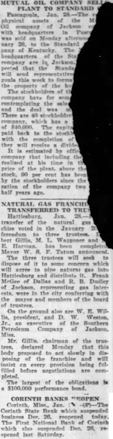 NATURAL TO Jan. natural chise voted January Gillis, Tatum The three seek will into distribute Frank Dallas and Dudley were city with the mayor and members the board On the ground Weston, the Southern Petroleum Company Jackson, Mr. Gillis. chairman the declared Monday that this slowly posing of the franchise provision being filled before negotiations are pleted. The largest of the obligations performance bond.