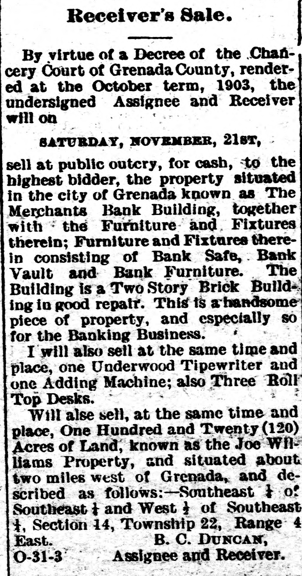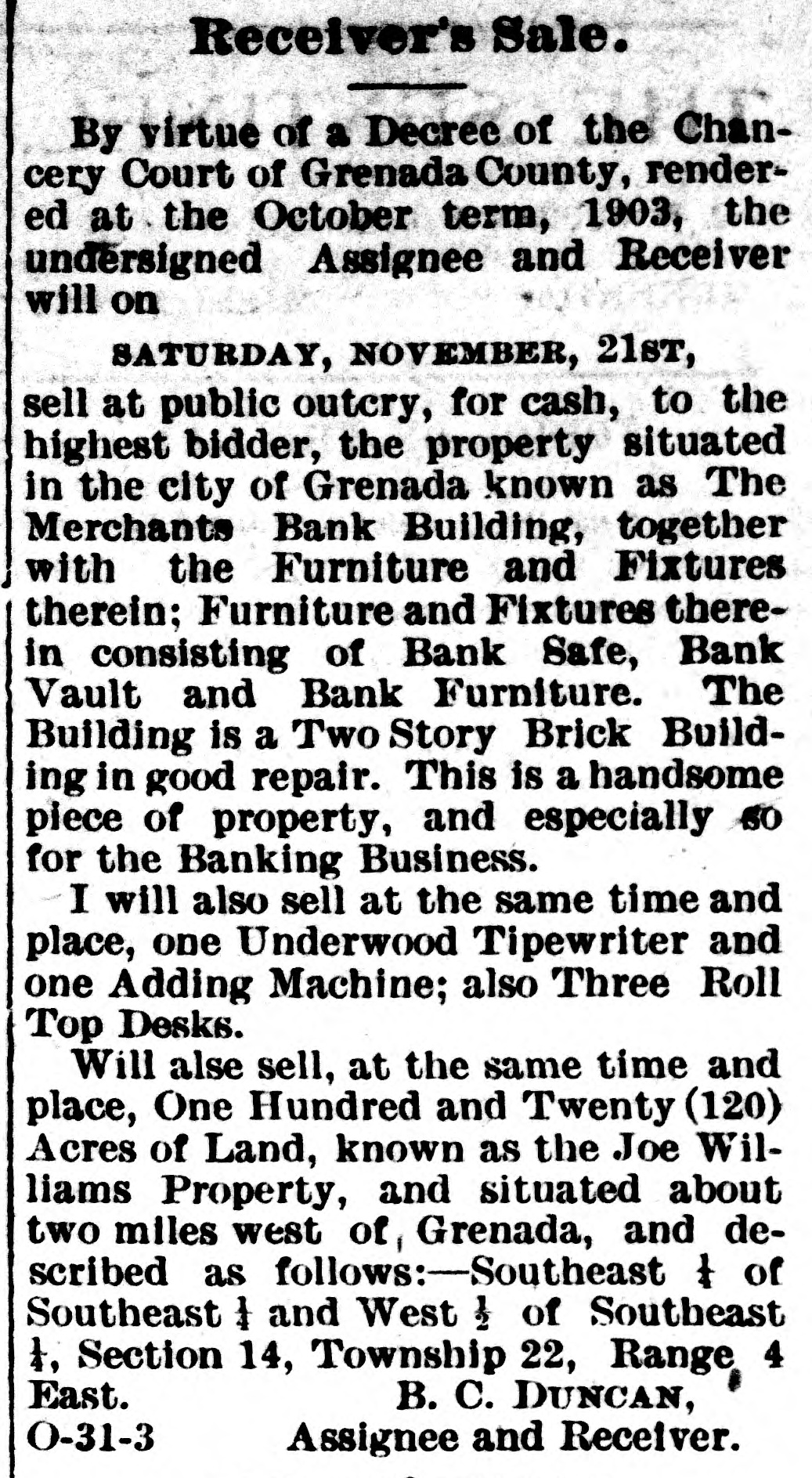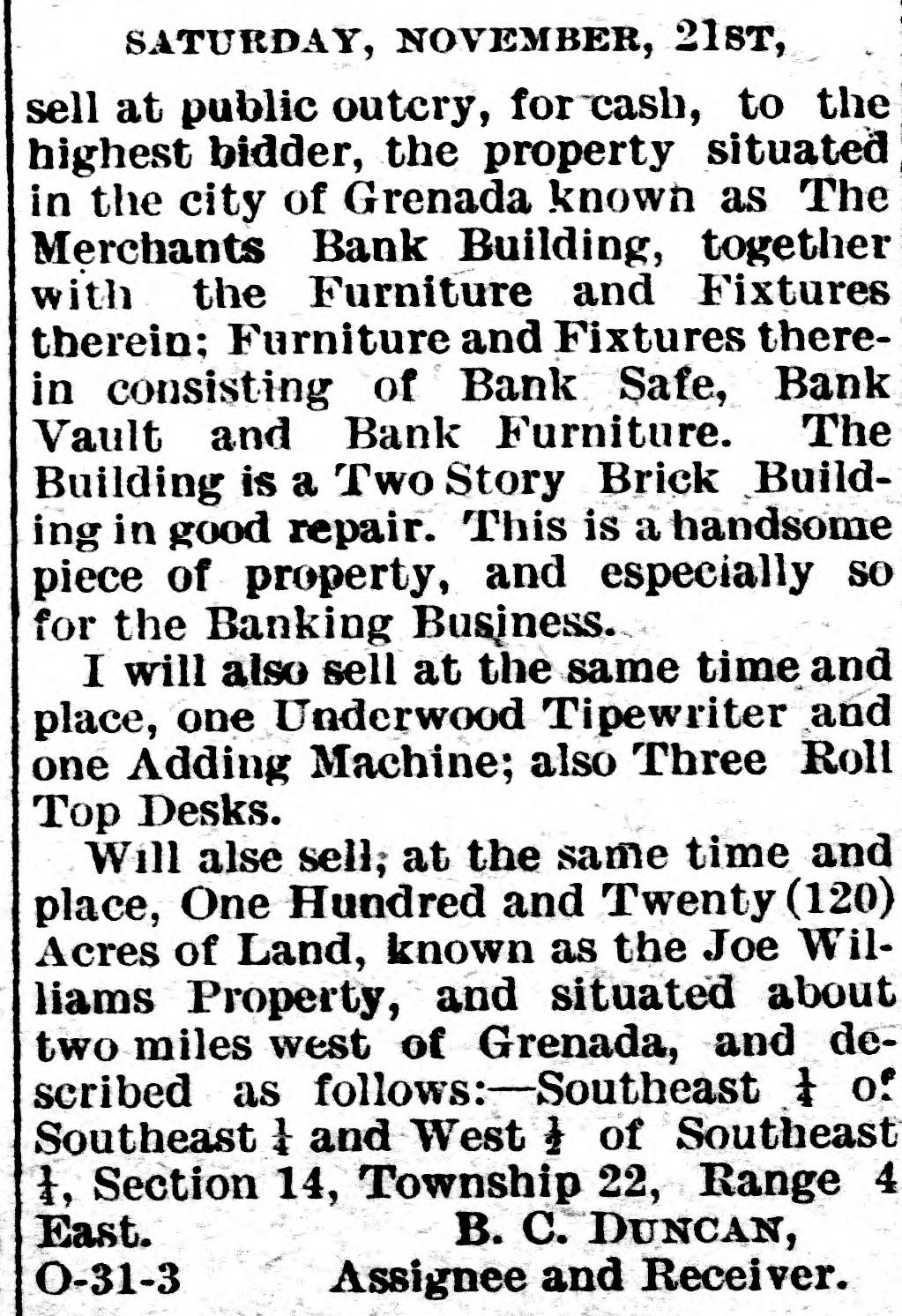 MISSISSIPPI NEWS. A Short-Hand Chronicle of Current Happenings. Quitman has asked for a new depot. Negro thugs and thieves are infesting Yazoo City. The Merchants' Bank, of Grenada, assigned last week. Ellisville has a new social club. The capital stock is $1,000. A large retail grocery firm has been incorporated at Laurel. A sleeper will shortly be put on between Chicago and Gulfport. Greenville's street car system is to be lengthened and improved. Mormon missionaries are distributing literature throughout the State. Gloster's Business League has undertaken the building of a brick factory. Oktibbeha county has put into operation the contract system for working roads. Rev. Z. T. Leavell, of Jackson, has completed a history of the Baptists of the State. R. A. Powell lost his residenee by fire at Lexington on the 28th. The insurance was light. Hon. C. V. Ratcliff has announced for State Senator from Pike and Franklin counties. L. L. Kearney, a member of one of Mississippi's oldest families, died at Flora on the 24th. Hon. W. P. Tackett succeeds Hon. W. S. Hill as District Attorney for the Fifth Judicial District. Many bones of old soldiers were unearthed at Vicksburg last week in a field which was being plowed. The Hazlehurst Lumber Co. lost several thousand feet of lumber by fire last week. The loss is heavy. Ben H. Akinson, fo Columbus, committed suicide on the 30th at Decatur, Ill. He leaves a wife and one child. The grand jury of Hinds scored certain city officers of Jackson, who are now busy finding out where they' at. Pick-pockets relieved a number of gentlemen of money and jewelry at the canal celebration at Vicksburg on last Thursday. Eugene Flowers shot and mortally wounded George Jones at Gallman, in a quarrel over 25 cents. Flowers escaped. Bishop and Mrs. C. B. Galloway reached San Francisco on the 27th and arrived at their home in Jackson on Monday. The Water Valley Concert Band has been engaged to furnish the music for the Mardi Gras carnival at Natchez Feb. 23rd and 25th inclusive. Dr. Jesse R. Jones, of Jackson, has patented improvements in cultivators, which he thinks will revolutionize the present mode of farming. The McCcmb cotton mills have