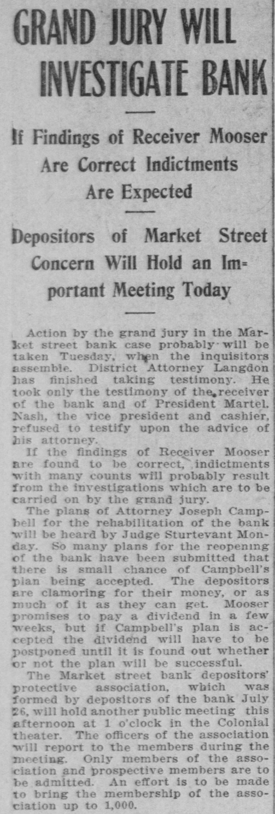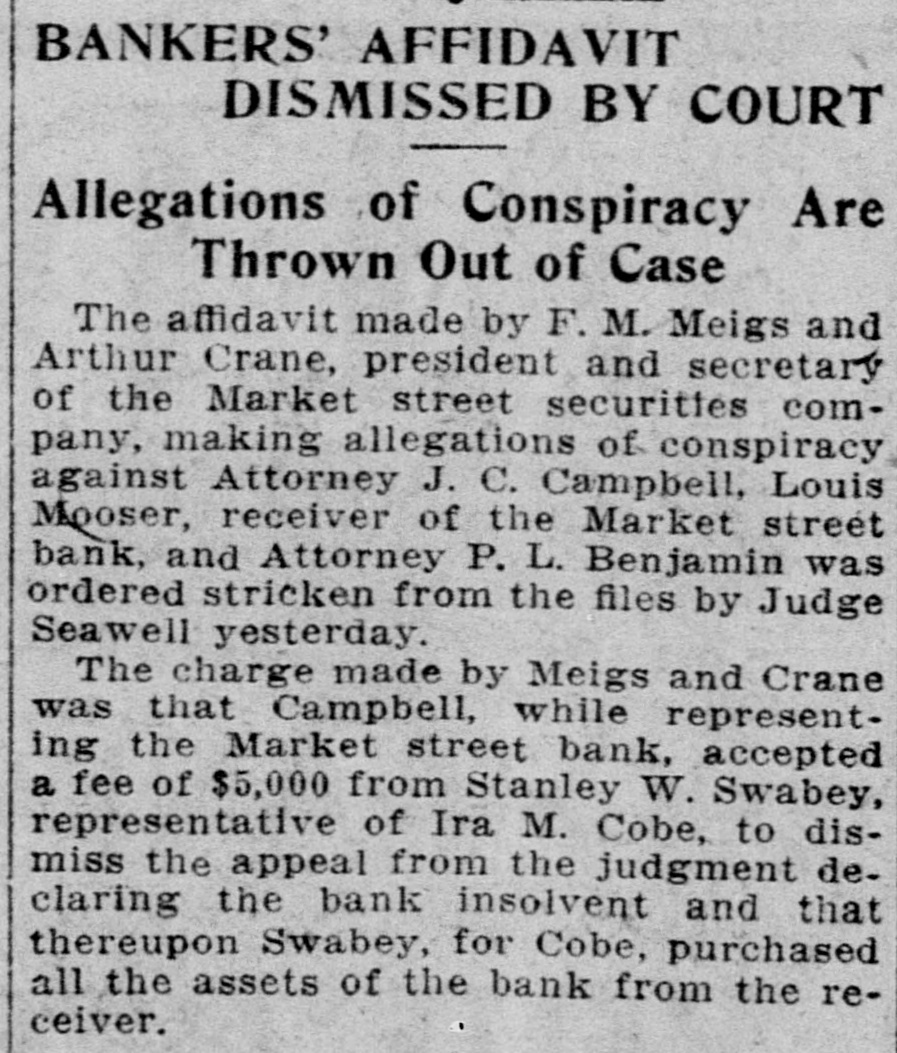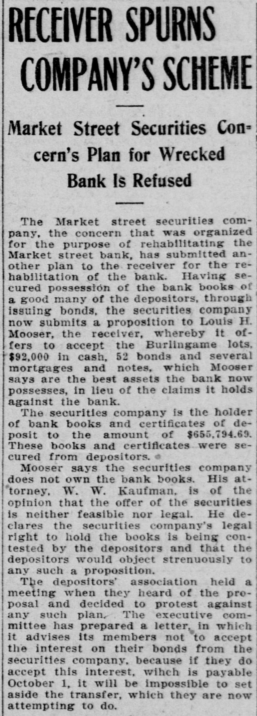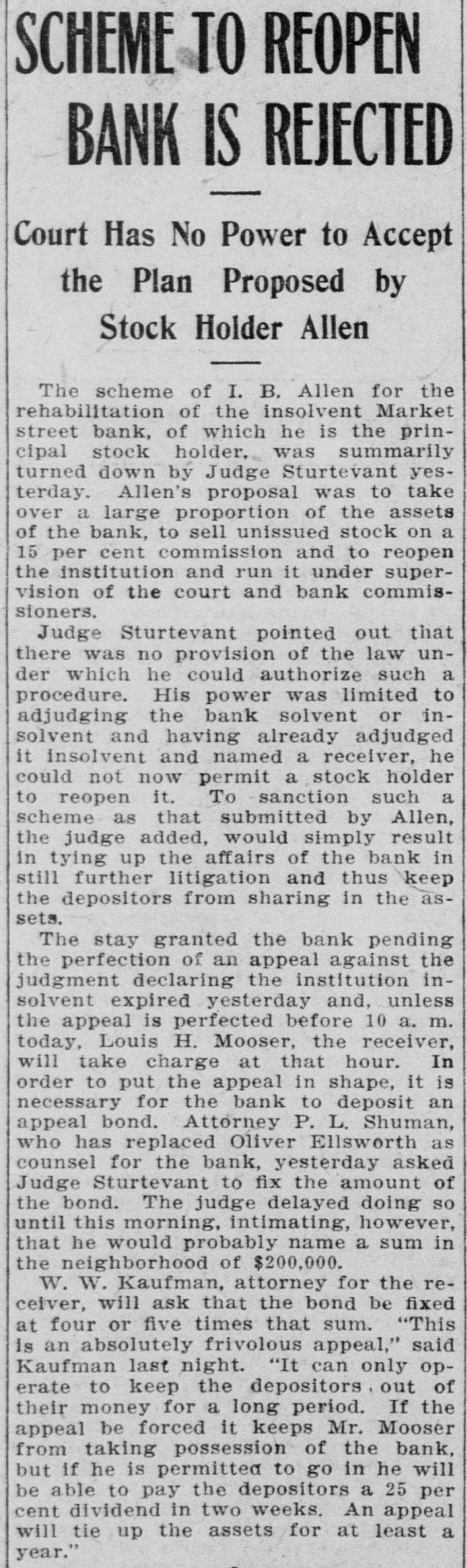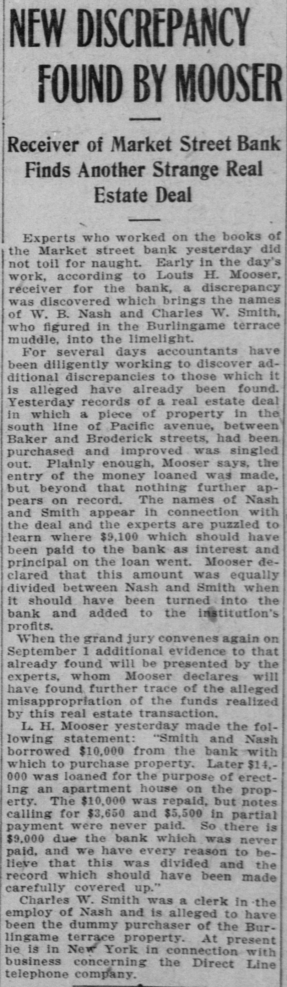 into temporary hospital, the harbor hospital being unable to accommodate all the injured who were brought there. About 100 patients were stretched on the dock at one time. Thursday evening tugs conveyed them to Goat island, where they were lodged in the hospital. The docks from Howard street to Folsom street have been saved, and the fire at this point was not permitted to creep farther east than Main street. To add to the horrors of the situation and the general alarm explosions of sewer gas shook many streets. A Vesuvius in minature was created by such an upheaval at Bryant and eighth streets. Cobblestones were burled 20 feet upward and dirt blew out of the ground. The only bank in the huge ruined district that escaped destruction was the Market Street bank, at the corner of Seventh and Market streets. It is in the gutted Grand building, but the firemen saved the ground floor. It will pay out money just as soon as it hears from the Clearing house officials. A corner of the city near the Pacific mail wharves at Second and Brannan streets, was not ruined, and the sailors' home is intact. The Postal Telegraph company has restored its cable connection with the orient by establishing a station at Ocean Beach, but there is no service yet for delivering messages there. Many Killed by Crazed Cattle. A series of fatalities took place Thursday as the result of the stampeding of a herd of cattle at Sixth and Folsom streets. Thre hundred of the panic-stricken animals ran when they saw and felt the flames and charged wildly down the street, trampling under foot all who were in the way. One man was gored through and through by a maddened bull. At least a dozen persons, it is said, were killed. Shock Empties Wells. A feature of San Francisco was the many wells and cisterns upon which thousands of residents depended for water for drinking and cooking. Every earthquake has affected these cisterns and wells. Water in many of them disappeared and did not return for months. The earthquake of Wednesday had the same effect, and this accounts, in part at least, for the scarcity of water after the shocks. While the city pipe system suplied a large Continued on page 5.