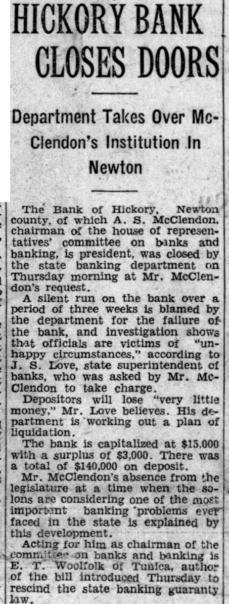 Los Angeles, April 3-(AP)-Six former officials of the Pacific National Bank were indicted today by Federal Grand Jury charges of misapplication of $528,400 of the bank's funds. The men are Anthony F. Swensen, Thomas Morrissey, Frank W. Shelton, Robert G. Johnson, Arthur P. Adkisson and James M. O'Brien. Federal officials said depositors were and would not be affected by the alleged loss. two defunct banks in Newton County, Mississippi, on charges that include forgery false pretense was disclosed with their arrest today. They are: S. D. Rudsell, Vice President and Director of the Bank of Hickory at Hickory; A. S. McLendon, Vice President and Director of the Bank of Hickory, and Chairman of the State Legislature's Committee on Banks and Banking: W. M. McLendon, Cashier of the Bank of Hickory, and H. N. Brown, Cashier of the Citizens' Bank of Newton. They were released under bonds of $1,000 each. The indictments grew out of the failure of the banks early last year.