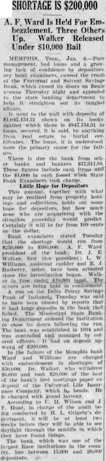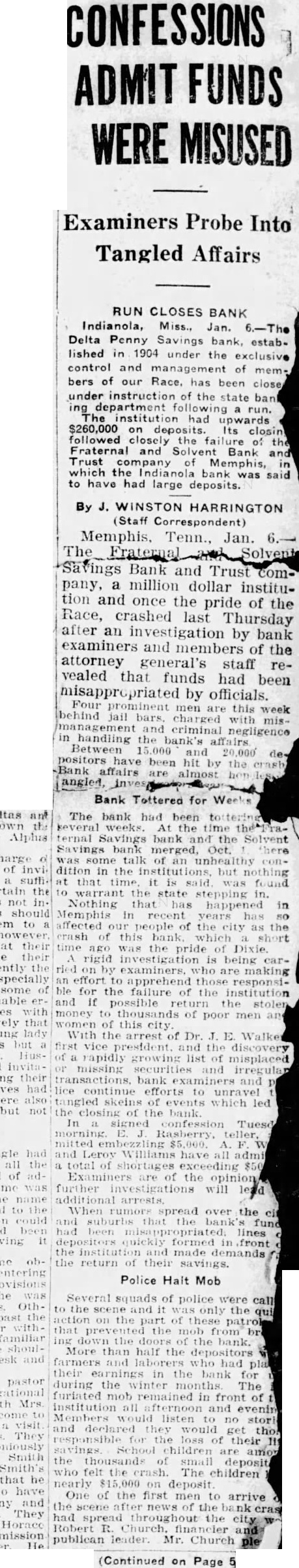 ANOTHER BANK FAILUR BANK Woman Slays White Sweetheart SAVINGS IN MISSISSIPPI Fire Destroys A. M. E. White Shriners Seeking STABBED MAN CLOSES DOORS Marcus Garvey is Planning Church in Los Angeles to Set Aside Injunction INDIANOLA, Miss., Jan. 11. TO DEATH IN unLOS ANGELES, of WASHINGTON, D. C. Negro Special) run on the Delta Penny known origin broke out in the AfShriners are seeking to set aside an Savings Bank of Indianola on TuesTour of Continental Europe rican Methodist Church, 1252 East injunction granted by Texas courts day was caused by reports that it 25th St., early Saturday, completely restraining them from using the had large deposits in the Fraternal SELF-DEFENSE beW a had civilization, progressive KINGSTON, destroyed the building and then and Solvent Savings Bank of Memnames, emblems and insignia of the cause the Greeks looked upon us Following a six week tour of the spread to the parsonage at 1250 East phis, which closed its doors last white organization. Litigation is then as gods. Jamaican Islands, Marcus Garvey ABERDEEN, Wash., Jan. week. The Mississippi State Bank 25th and to a dwelling at 1258 East pending. However, to offset any will tour the West Indies, Central The black men of Carthage, the 25th St. (Special.) Coming as the climax ing Department ordered the colored move the Negro Shriners might make black men of Ethiopia, the black and South America, after which he of a quarrel between the pair, Clarinstitution to close its doors pendBoth the dwelling and the parsonwhite Shriners have noted an appeal will make his future home in Lonmen of Egypt and Timbuctoo and ence E. Roan, 25, white, was age were nearly razed by the flames, ing a thorough examination of its to the plea of Negro Shriners. don. Alexandria gave the light of civilistabbed to death Saturday night books. The Delta Penny Savings which burned fiercely before fire The white Shriners declare that This announcement has been zation to the world. Ethiopia shall by his colored sweetheart, Essie Bank was established in 1904 and fighting companies could get it unthe question to be determined is surely yet stretch forth her hands made from Garvey headquarters on Walker Brandon. 28, at the home der control. was controlled and managed by colwhether they lost their rights by deunto God. and princes shall come authority of the provisional prest of the couple at 409 West Hume ored officers. It had on deposit Total damage was estimated at lay in asking an injunction. The dent. himself, who making out of Egypt. street. In an affidavit the woman $25,000. upward-of $360,000. Bank examinwould be untrue to the faith white Shriners explained that the whirlwind speaking campaign in the is alleged to have admitted cutting ers are checking up the financial The pastor of the church is Rev. of my fathers, I would be untrue to Islands. It was also definitely ansuit was instituted by the Arabia Roan's throat, but claims that she relations of the Indianola and MemA. E. Lyle, and occupied the parmy own conscience, I would be unnounced that the headquarters of Temple at Houston to restrain the acted in self defense. She is being phis institutions. sonage. the Universal Negro Improvement true to my God. if I did not stand Doric Temple of colored Shriners in held at the county jail on a charge The Fraternal and Solvent SavThe fire jumped the home of Association will remain in New upon the platform of racial rightthat city, as soon as the existence of of murder, while Mrs. Lucie Peterings Bank of Memphis closed its Mrs. Emma Cranshawing 1258 East York the latter was known and within a cousness, of racial truth, of racial son, colored, who lived with the doors last Thursday It went to the 25th St., and slightly burned the In London, Garvey hopes to eshonor, and of racial self-respect. year and a half after its organizapair, is being held in the city jail roof. wall with deposits of $1,047,154.31 tablish a base for future detion. Why, there is no beauty in the annex as a material witness. shown on its books, against which Investigators could not determine velopment of the association and world except it looks like the peoPolice were notified of the killthere is $847,154.31 in loans. sewill tour continental Europe. He ple who look like me. the origin of the blaze. ing after Roan had staggered from cured, it is said by anything from shall teach the black man to will also visit periodically the vathe house to the home of Mrs. R. real estate to burial certificates. rious centers of his activities and, see beauty in himself to the excluManley, 407 West Hume. Blood The loans, it is understood were the it is said, might return to the sion of all others, and be hanged to Tulsa Oil King was gushing from a severed artery primary cause for the failure. United States, if there is a change the man who says it shall not be Democrats Hope in the man's throat and he lapsed There is due the banks from in the political atmosphere so. What do I care about you, if into unconsciousness before he other banks and bankers, $37, Plans Greater U. N. I. A. you do not care anything about me? Soon Won't Have could tell the story of the attack. 911.88. These figures include cash That Garvey plans to organize and I respect men as they respect me. Police and an ambulance were sumitems and the $1,000 in cash found construct even a bigger Universal am willing to honor men, as they To Split Race moned but Roan died while en when State Bank Examiners took Negro Improvement Association was honor me, but if you think the route to the Aberdeen General hoscharge. indicated in what is regarded his honor is going to be on one side, An Undershirt pital. keynote address made at Ward's Little Hope for Depositors you crazy In her affidavit, the woman deVote With Smith Theatre here. This amount. together with what Fear God, Respect Law clared that the quarrel started Quoting the great poet philosoTULSA, Okla. Jan. (SpeReduce the proposition to its may be realized from property holdwhen