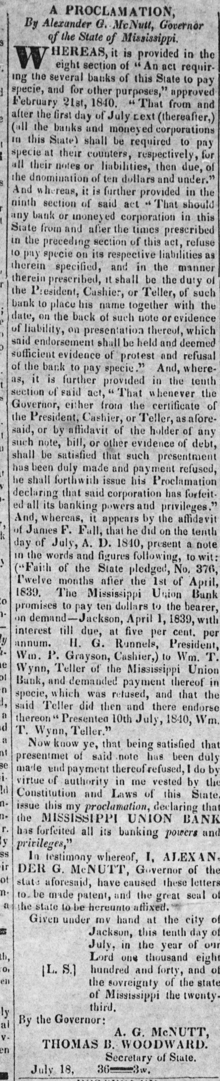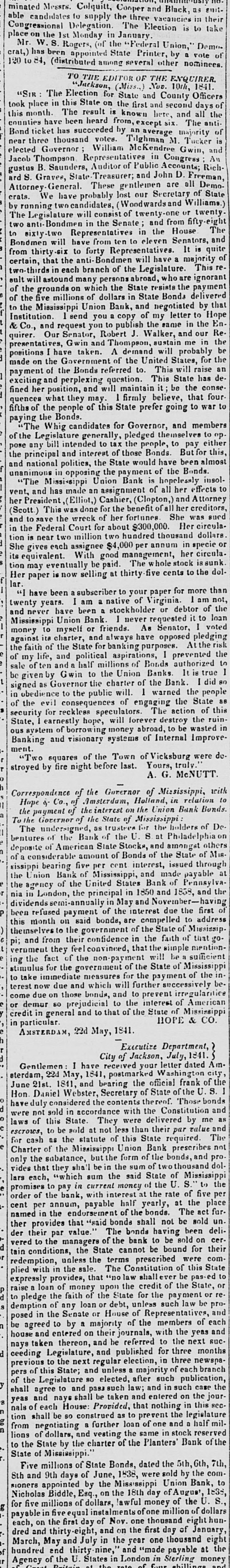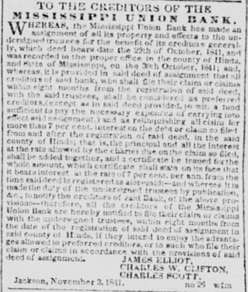 Mississippi Union Bank, if the debts are