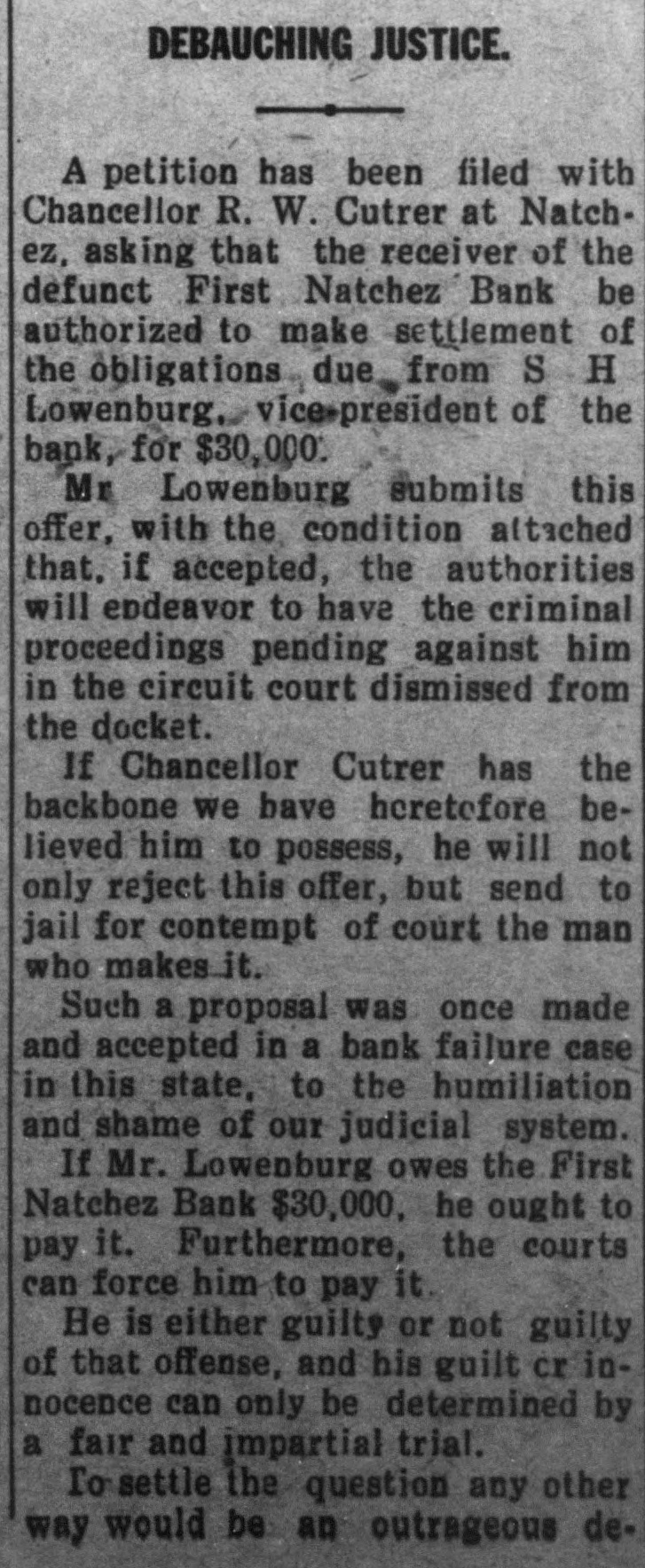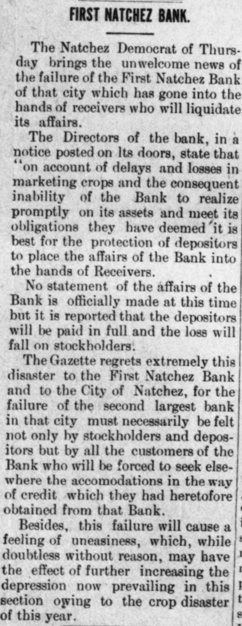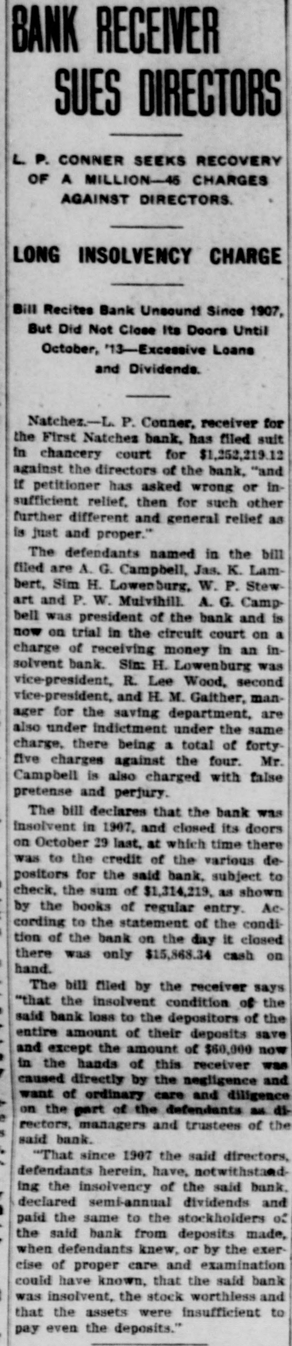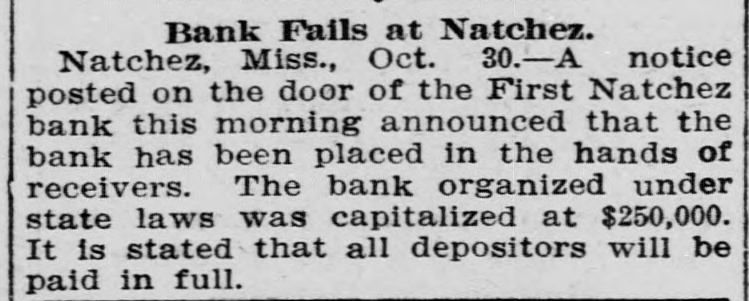 MISSISSIPPI NEWS ITEMS Ripley.-Monday was trade day in Ripley, a special feature of which was the colt show. This is an annual event here. Natchez.-On account of the extremely low stage of Black river at its mouth transportation by boat has been discontinued. Gulfport.-A contract was made with a Mobile firm by the city commissioners for the erection of the Gulfport sea wall. Natchez.-City property of the First Natchez Bank which failed three years ago was offered for sale by Receiver L. P. Conner. Greenwood.-The Greenwood Woman's Club will act as host for the 8th district to the Mississippi Federation of Women's Clubs Nov. 14-17. Winona.-The good roads commissioners sold for beat No. 1 $65,000 worth of bonds to build the Jefferson Davis Highway through this beat. Walthall.-The Tri-County fair, embracing the counties of Choctaw, Oktibbeha and Webster, will open Oct. 18 at Mathiston and continue for three days. Lucedale.-At a special, election held in George county it was decided by a vote of three to one to issue $90,000 worth of bonds for road improvement. Carthage.-On Saturday, Oct. 7, a large crowd was here to attend Trades day. The teachers and the boys' corn club were in session and a gala time was had. Meridian-J. M. McBeath, the chairman of the Mississippi Highway commission; Cliff Williams and E. S. Bostick went to Mason and met the pathfinders of the Jackson Military Highway, and conducted them through Kemper county to Meridian. Gulfport-County Superintendent of Education W. H. Wood has issued a proclamation making Oct. 13, which is ground-breaking day for the Mississippi centennial, a holiday for the schools of Harrison county, in order that teachers and children may attend the exercises. Vicksburg.-Little 12-year-old Georgia Chichester, whose father, mother and sister were killed in an automobile accident two weeks ago and herself badly injured, was kept in ignorance of the fact that she was an or. phan until Thursday. Several times she remarked that she couldn't understand why her parents had not come to see her. "They never did me this way before," she remarked once. Jackson.-Eight states will be rep resented at the Southern Tuberculosis Conference to be held in Jackson on Oct. 30 and 31. The states of North Carolina, South Carolina, Tennessee, Georgia, Alabama, Mississippi, Florida and Louisiana will send delegates, and it is expected that fully 500 of the leading citizens of these states will be in attendance. Columbus.-For the second time in her history Columbus had the pleasure of entertaining the Jackson highway pathfinders, the party consisting of Emory C. Dent of Kentucky, Walter B. Crimm and W. I. Brown of Indiana, Official Pathfinder H. E. Toms, a road engineer in the employ of the federal government, and C. K. Gibbs, editor of the Motor Age, having arrived in Columbus Tuesday afternoon. The scouts were met at the Alabama state line by a committe of Columbians, which included Hon. T. J. Locke, Jr., local member of the executive committee of the Jackson Memorial Highway Association; Messrs. F. W. Maer, E. H. Sherman, B. A. Weaver, J. C. Hacklewan, Jr., W. H. Carter, W. B. Harrington, R. E. Johnston, Irvin Kaufman, Earl Waters and Wr. J. W. Lipscomb. Jackson.-After devoting several years to experiments in an effort to eliminate the greatest pest in the cotton belt of the south by a noted planter, the following advice is given: "Puli up all the cotton stalks in all the cotton counties and back them, being very careful to make a clean burning so there will be none left to start another generation for the following year. The boll weevil has filled the cotton stalks full of eggs now. It is done by a cross-breed of insects, the boll weevil, with a sharp snout, that may be called elephant snout, and a small bug about the size of a lightning bug. He is called the sharp-shooter. The sharp-shooter and the boll weevil mate together, and make the first generation of the boll weevil that hatch in the cotton stalk. The first generation will hatch out of the cotton stalk by the first of May. That generation will hatch out another generation of boll wevil insects in fifteen days." Columbus.-Gen. G. W. Price, commander of the Third Brigade, Missis--