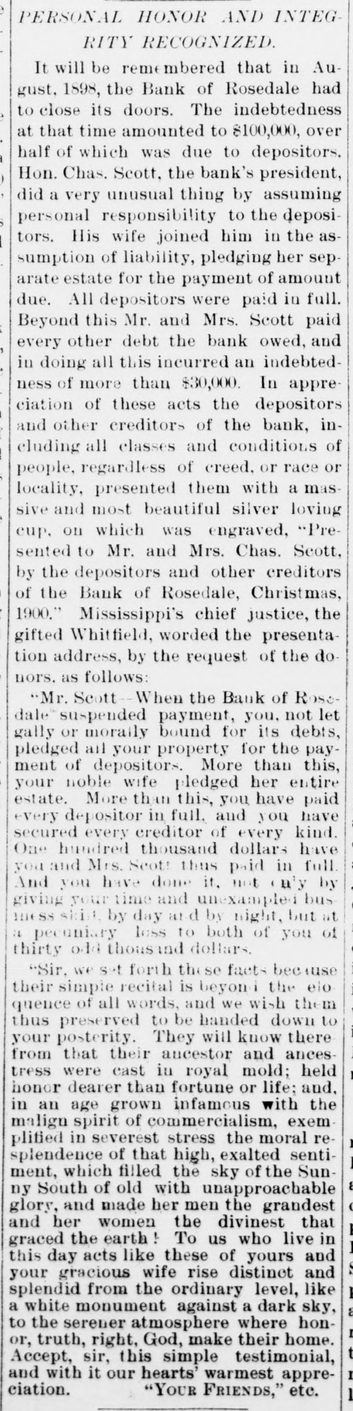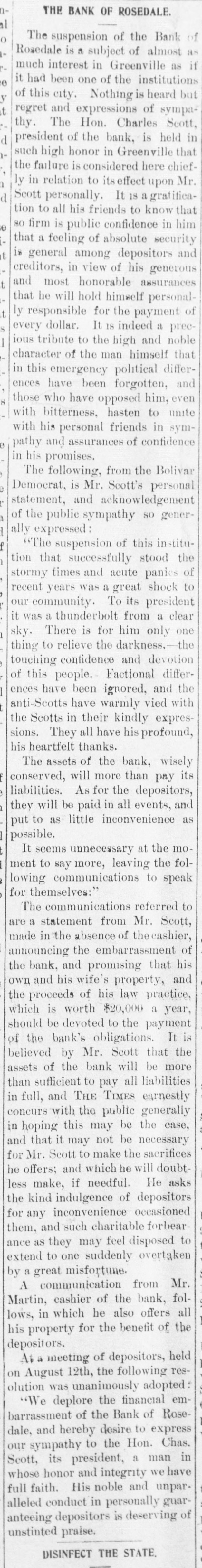 ed that a few days ago the Bank of Rosedale, of which the Hon. Chas. Scott