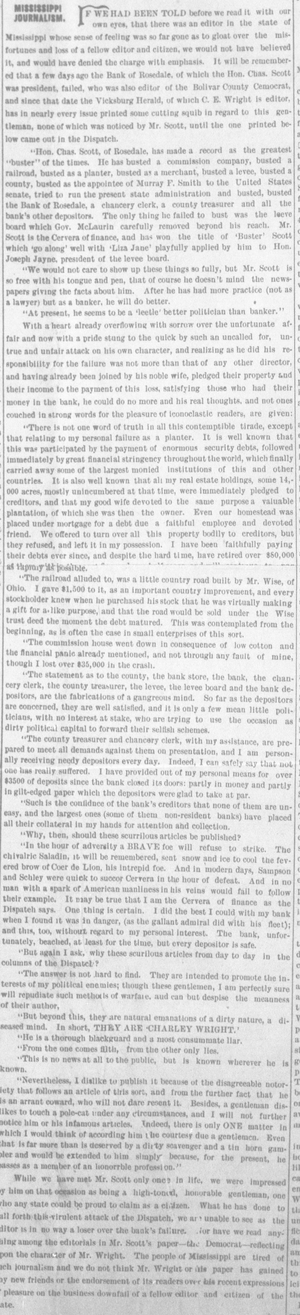 and since that date the Vicksburg Herald, of which C. E. Wright is editor,