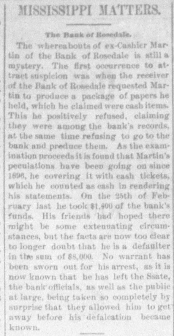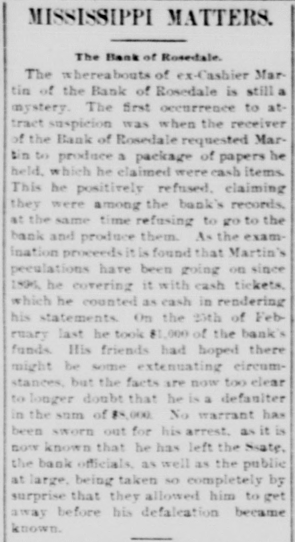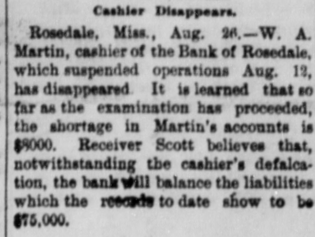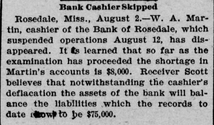 the Bank of Rosedale, a chancery clerk, a county treasurer and all the