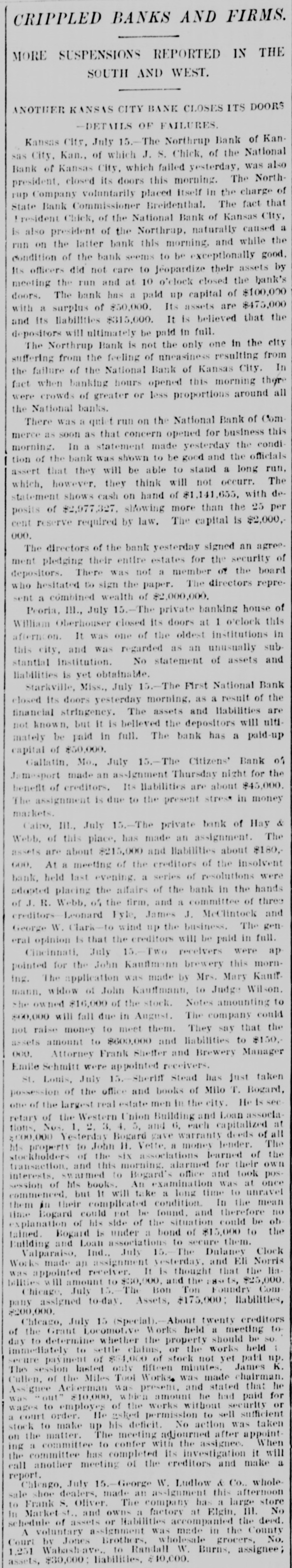 Kansas City, July 15. The Northrup Bank of Kan-