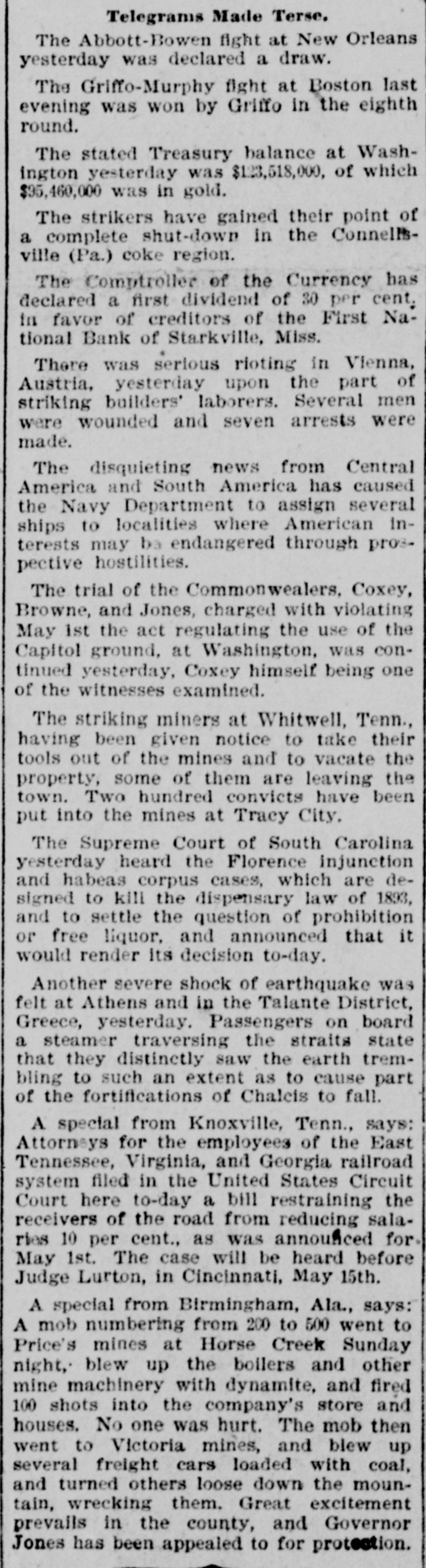 morning. In a statement made yesterday the condi-