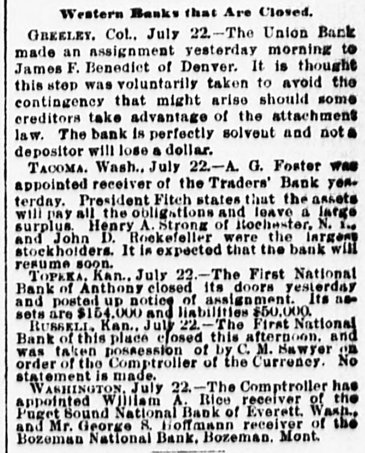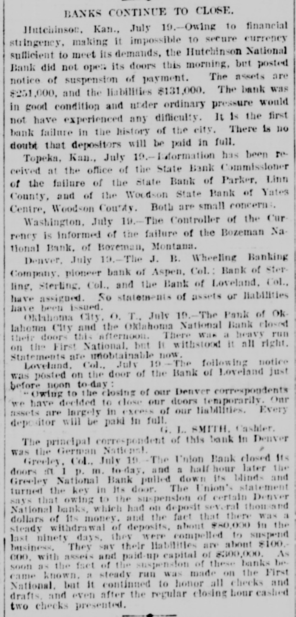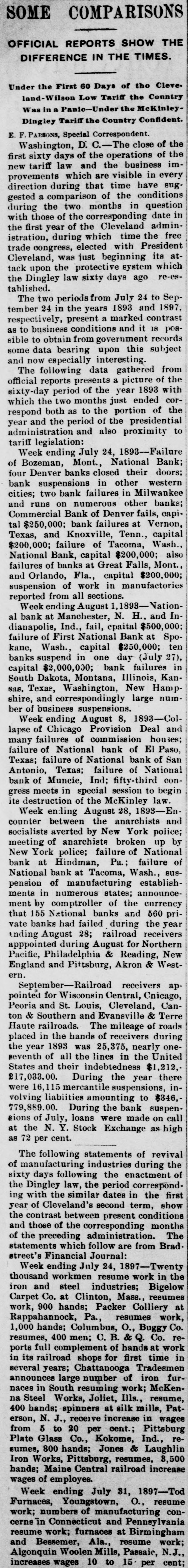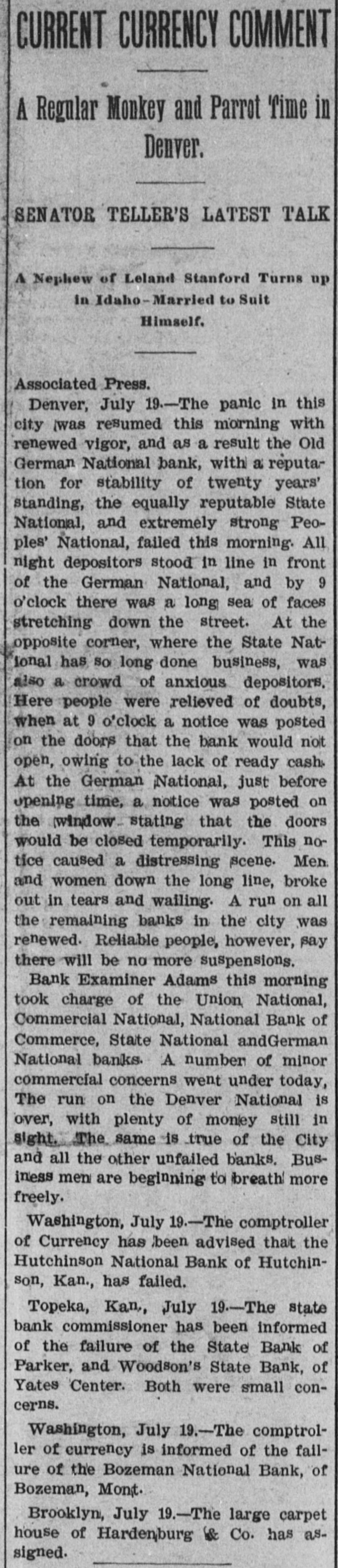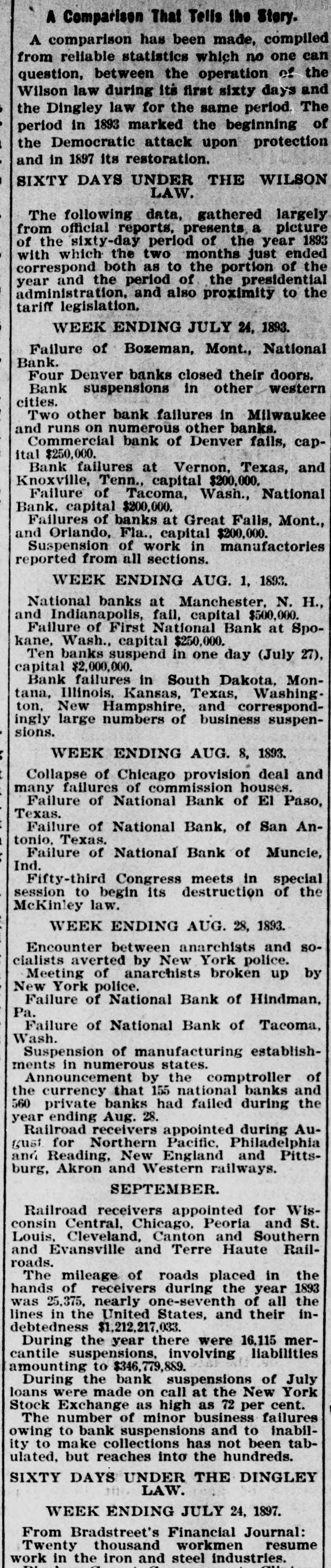 TELEGRAPHIC BREVITIES. The farmers in central and northern Iowa are greatly excited over the appearance of a worm about an inch in length that is devastating the fields of seed timothy. The bark Alice Reed, from Cienfuegos, arrived at the Delaware Breakwater last night, Both mates had yellow fever on the passage. One died and was buried at sea. Steam yacht Oneida, with President Cleveland on board, left her anchorage off Jamestown, R. I., about 7:30 this morning and proceeded outside, presumabiy to the eastward and Gray Gables. Among the failures to-day were the State National Bank and the German National Bank of Denver, the Citizens' National Bank of Armourdale, Kansas, and the Bozeman National Bank of Bozeman, Montana. A dispatch from Tonawanda, N. Y., says that Mrs. Conrad Veilham has fallen heir to about $4,000,000. It seems that by the death of an uncle in India a fortune of $20,000,000 was left to be divided between five heirs. Te residence of John Ulrich at North Fairmount, O., was destroyed by fire this morning by the explosion of a gasoline stove. Mr. Ulrich was fatally burned, while his wife and five-yearold child were seriously injured. Rev. Edwin Benjamin Russell, the well-known rector of the American Chapel in Florence, Italy, has abandoned the Protestant Episcopal Church and has been received in the Roman Catholic Church by Archbishop Corrigan. Charles Eckman who was working on a boiler of the electricstreet railway at Omaha yesterday, started to crawl inside the boiler, when his assistant heard him scream. He found Eckman in the manhole, with his legs hanging ounside. Several men attempted to extricate the body, but received severe shocks. The body was burned to a crisp by the time the machinery was stopped. Judge Jenkins, of Milwaukee, Wis., will not resign from the bench of the United States Circuit Court in consequence of his indictment by the grand jury as a director of the Plankinton Bank. He has reached this decision since a conference with Chief Justice Fuller of the United States Supreme Court and his Circuit Court conferees. The chief justice will personally lay Judge Jenkins' case before President Cleveland. A horrible story of outrage reached Alton, III., yesterday afternoon. The crime happened on the Missouri shore opposite Alton. The victim is the wife of a fisherman and during his absence three men came to his home and choked his wife into insensibility. The neighborhood have organized a lynching party. Lopez Mumaugh, a worthless and dissolute cigar maker, shot and killed his divorced wife's sister, Miss Mary Winch, and then killed himself at Indianapolis, Ind, last evening. Mumaugh has always been cruel to his family and his wife secured a divorce last fall. The excursion train carrying the Sunday Schools of Bethany and Bethlehem Churches of Buffalo was wrecked at East Aurora last night. One man was fatally injured and twenty others, old and young, more or less seriously hurt. The remains of Anthony J. Drexel were consigned to the tomb at Philadelphia this morning with services as unostentatious CS was the life of the great banker and philanthropist. The Mobile Register Company has assigned. DDINISTRATOR'S NOTICE-Having A qualified as administrator of DANIEL PATTERSON, deceased, all persons having claims against the estate are hereby notified to to me, are present and all persons the same, immediate indebted duty settlement. to authenticated said estate required to make was SMITH City Sergeant
