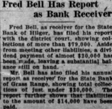 NOTICE OF SHERIFF'S SALE. District Court of the Tenth Judi District of the State of Montana. in for the County of Fergus Inneapolis Trust Company, corpora plaintiff Ira E Wilber and Katie Wilber. husband and wife: Bank of County National Banking cor D. Williams. as Receiver of Bank of Fergus County. National nking corporation Henry Scally. Scally. his wife (if any John wife (if his sold at Sheriff's sale, on the 14th of March, A. D. 1925. at the hour of o'clock at the front door of Court House of Fergus County. at Montana, the following deestate: west half of section twenty. the east half of the northeast arter NE14) of section twenty (29) and the north half of the north quarter NW½ of section thirty (33) in township fourteen (14) north, twenty (20) east, of the Montana incipal Meridian, and containing 450 more or less, according to the Gov ament survey thereof. Together with all singular the tenements. appurtenances thereto belonging or in yway uppertaining thereto. Lewistown. Montana. this 18th of D. Hausen, Baker, Montana, attorney for