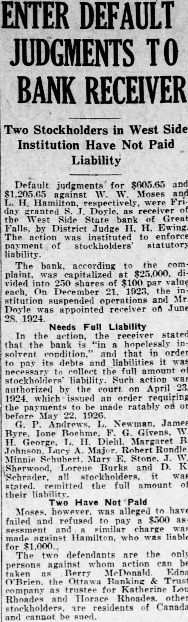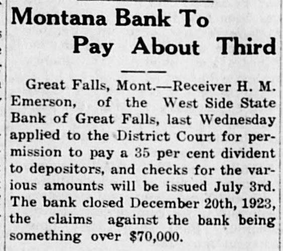 News of Montana Brief Notes Concerning the Treasure State Plan Sugar Factory.-A sugar factory for the lower Yellowstone valley in the not distant future is one of the t possibilities that is at this time stirring the morale to a hectic enthusiasm. Three weeks ago a party of men, composed of directors and officers of one of America's largest sugar companies, made a trip over this project, and although publicly declaring to the contrary, the inspection was so thorough as to demonstrate more than passing interest. Comes now R.S. Nutt, a Sidney man, who has always ben a leader in financial and development circles and who, the community has reason to presume, is in closext touch with this large sugar company, and who has taken 90-day options on five pieces of choice farm lands which he admits is highly suitable for beet sugar factory sites and demonstration farms. Insurance Plan Launched.-A farmer's mutual Insurance company has been organized by the ranchers of Tobacco Valley and Lincoln county. Temporary organization was perfected by the officers of the Tobacco Valley Livestock association, the directors of which are C. 0. Winkley, J. M. Rummel, Fred Marvel, Joseph Peltier, T. M. Quirk. J. W. Millegan, secretary for the association is acting as secretary. The articles of incorporation recite that the name of the company shall be, Lincoln County Farmers'' Mutual Insurance company; its purpose to protect the members from loss by fire and lightning: its field of operations, Lincoln county. and the principal place of business, Eureka; its directors those listed above: that the 25 members incorporating with insurance totalling $55,945. Mine Money on Looted Train-Rep cent looting of the crack mail train on the Milwaukee railroad was of more than passing Interest to the miners employed by the Republic Coal company, h of the Klein mine near Roundup. A shipment of currency amounting to apM proximately $30,000, intended to meet the mid-month pay roll, was among the fi loot taken by the bandits. This fact Id was ascertained shortly after the robfi bery and a duplicate shipment was S sent from Chicago immediately. de Men Now Operating Holdings.-WN. p liam Maxwell, state mining inspector, H who recently organized the Highland C Consolidated Mining company, has se taken a crew of men to the property, 19 miles south of Butte to start the B work of getting things ready for active K operations. The property, which cono sists of 19 adjoining claims, has been M nactive for the past eight years. More to than a score of Butte persons are ownper ers of the group, which was recently consolidated by the Highland company, st Crops in Richland Show 100 Per an Cent-The weekly crop report is as fe ollows: Richland county's wheat to lax and oats acreage maintaining 100 er cent condition. Corn slightly backM vard with promise of being knee high y July 4. Sugar beet acreage of best ut little chance for weeding. Alfalfa, ay and grazing continuing improve cla nent even over last week. Five rains Ch uring last week total two and three Ce uarters inches. Best prospect in pa istory. will Bank WIII Pay Dividend.-A diviend of 35 per cent will be paid soon by the depositors of the West Side mu tate bank of Great Falls following the thi ranting of the petition of Receiver H. peo Emerson, filed in the district court, the sking permission to disburse $23,717 per ow available for that purpose. a Improve Beaver Creek Roadmir hrough an arrangement in which ins ewis and Clark county and the forit service are co-operating, the highgra I ay from Nelson up Beaver creek to bas e Martien ranch is being repaired. of here is considerable bridge work to done. pre feet