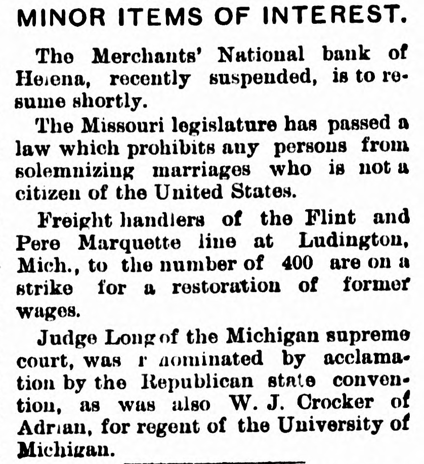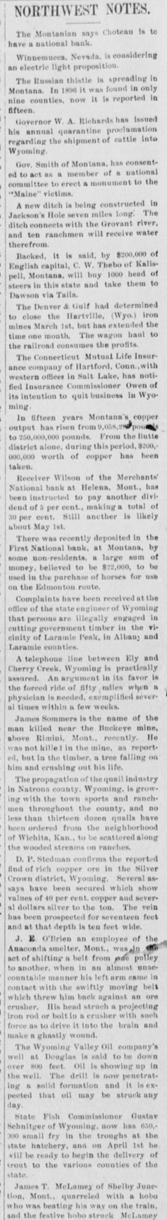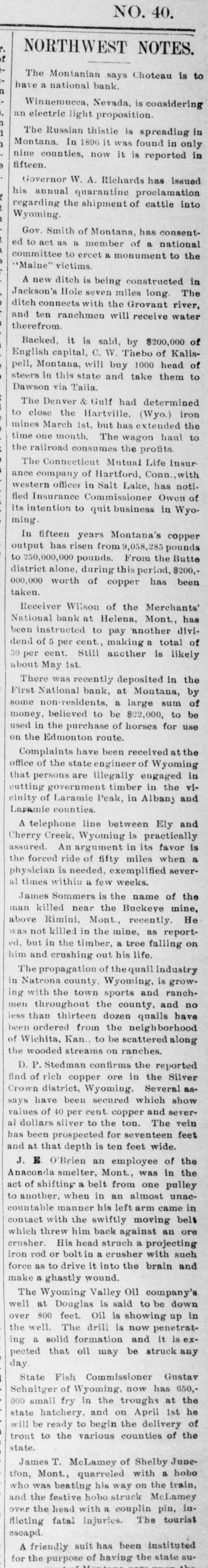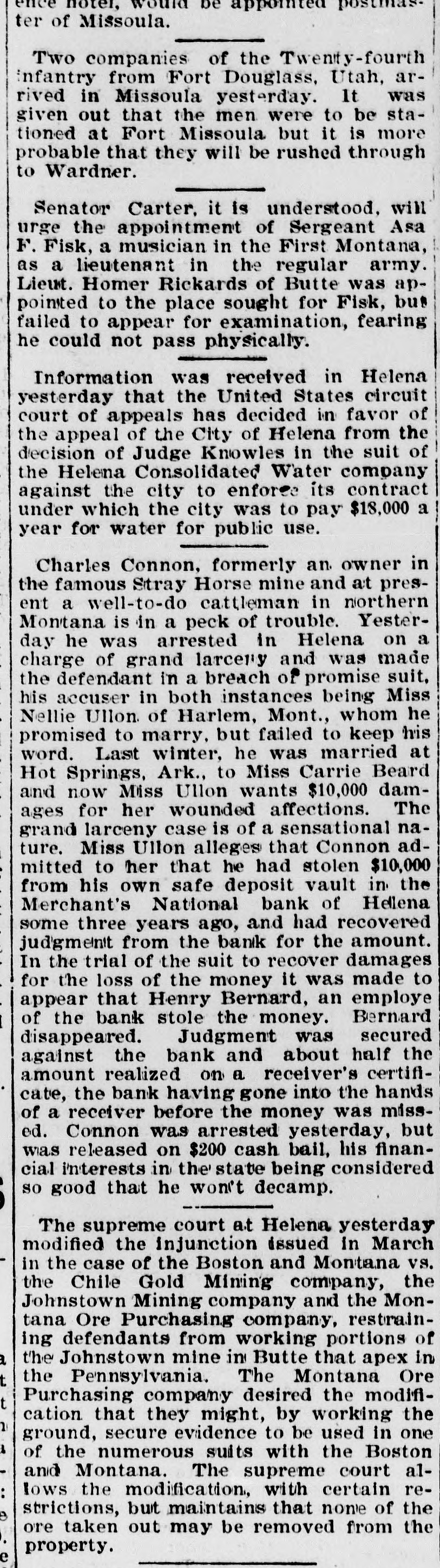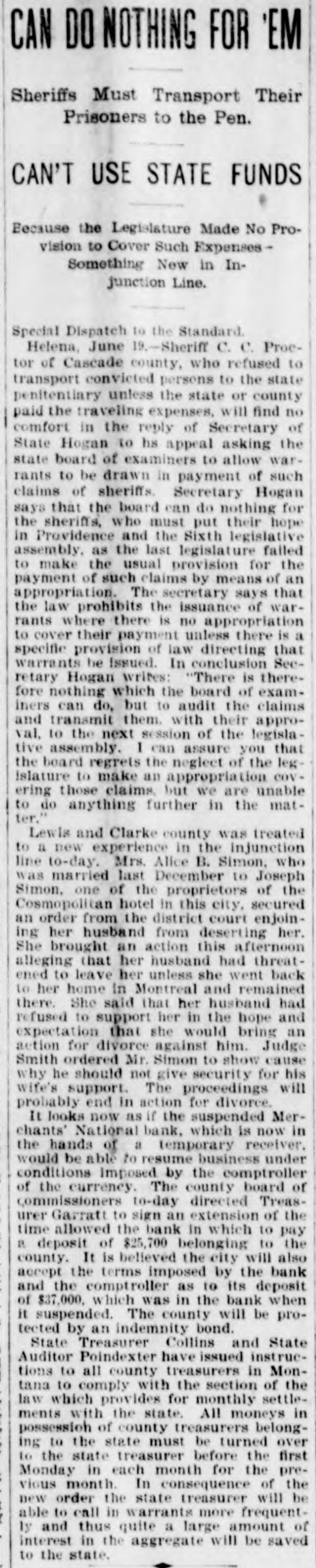 Helena, May 2-The idently of two of the parties indicted by the recent federal grand jury, whose indictments were placed in the secret docket pending their arrest, was made public to-day. They are L. H. Hershfield, late president of the suspended Merchants' National bank of this city, and T. P. Bowman, assistant cashier. Messrs. Hershfield and Bowman returned from the East to-day, having started for Montana as soon as they were apprised of the grand jury's action. Both presented themselves in court and their bonds were fixed at $5,000. These they readily furnished and were released, Sam Weinstein and C. D. Hard becoming securities for Mr. Hershfield and Jacob Yund, Sam Alexander, C. W. Dresser and Tom Cooney going on Mr. Bowman's bond.
