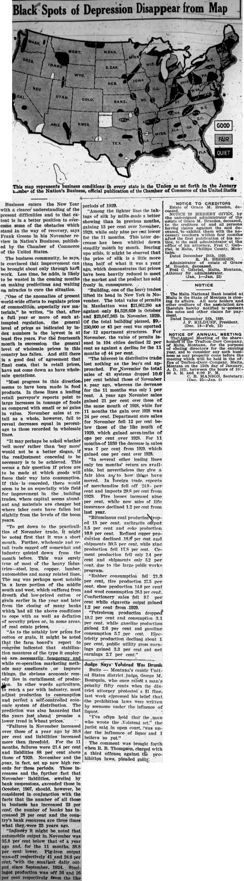 NOTICE OF ANNUAL MEETING Meeting the shareTrafton Company, Montana, for the purpose efecting Malta, directors for the ensuing year, and to consider any such business as may properly come the meeting fice Malta, Montana the 15th day January, D., 1931, the hours of 10:Secretary. (Dec. 25-Jan.