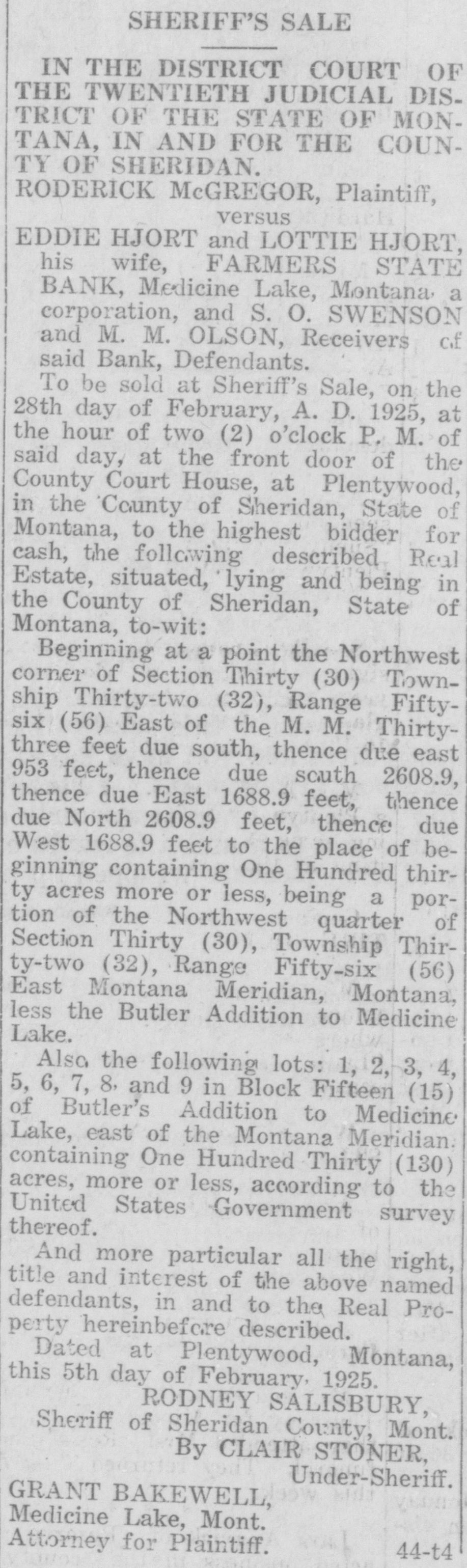 Plentywood. Montana,