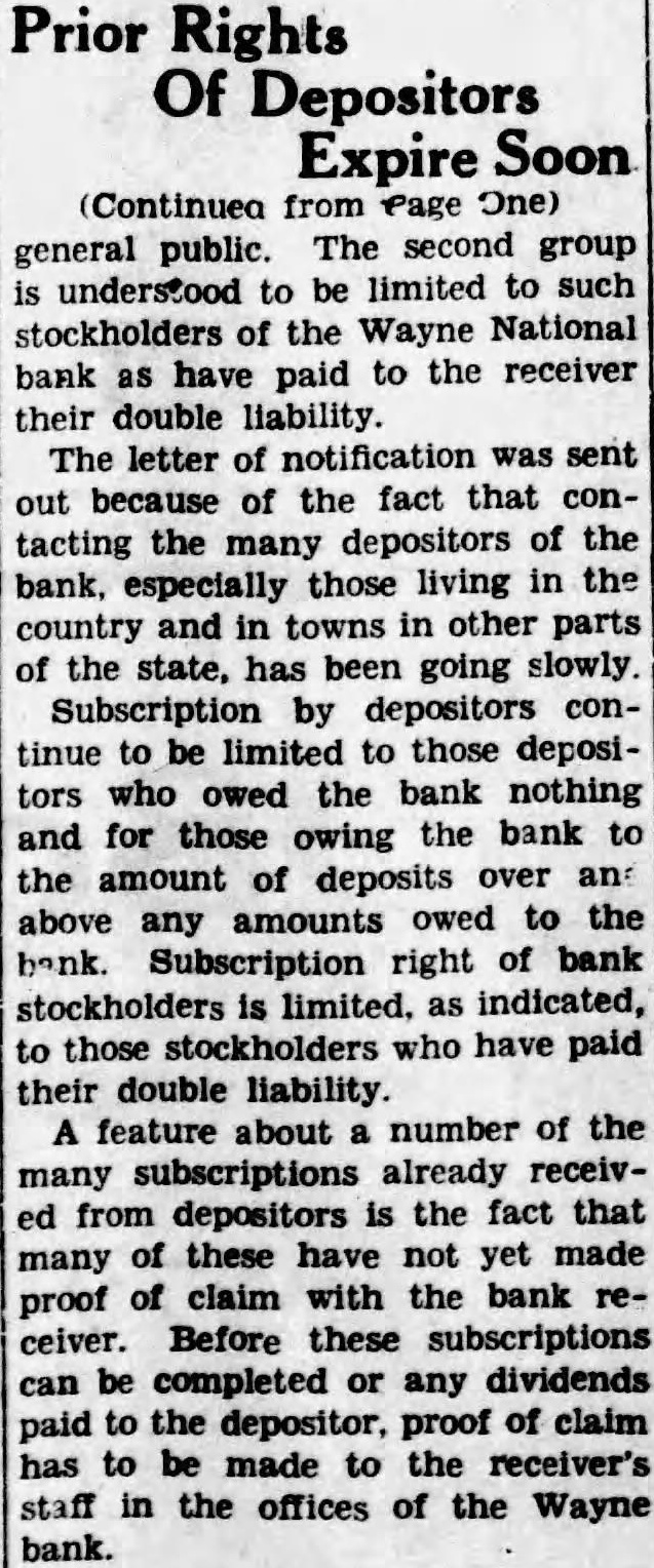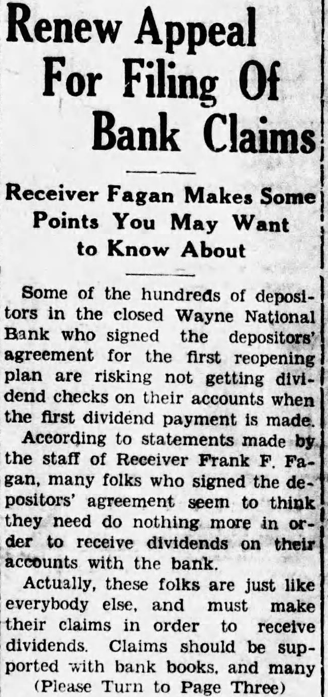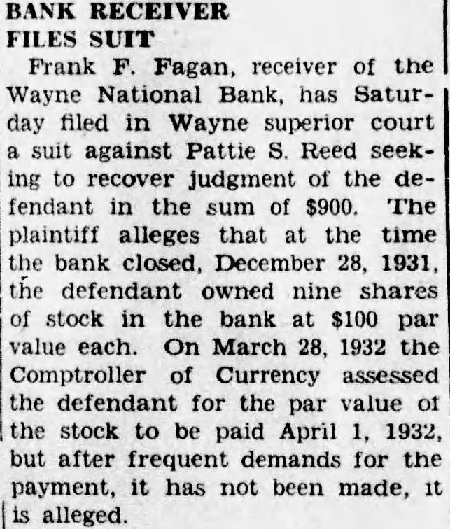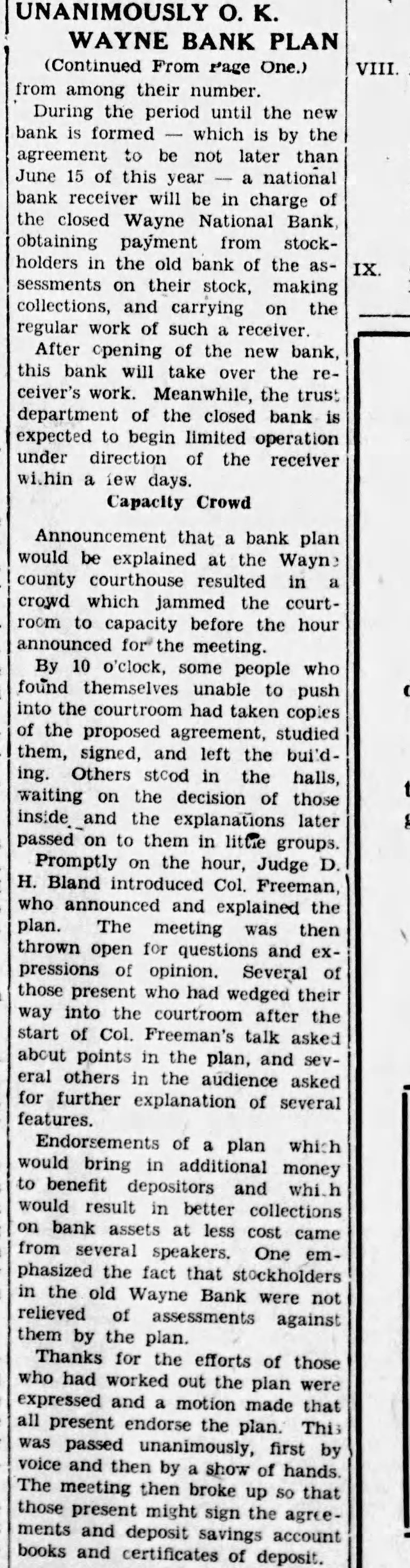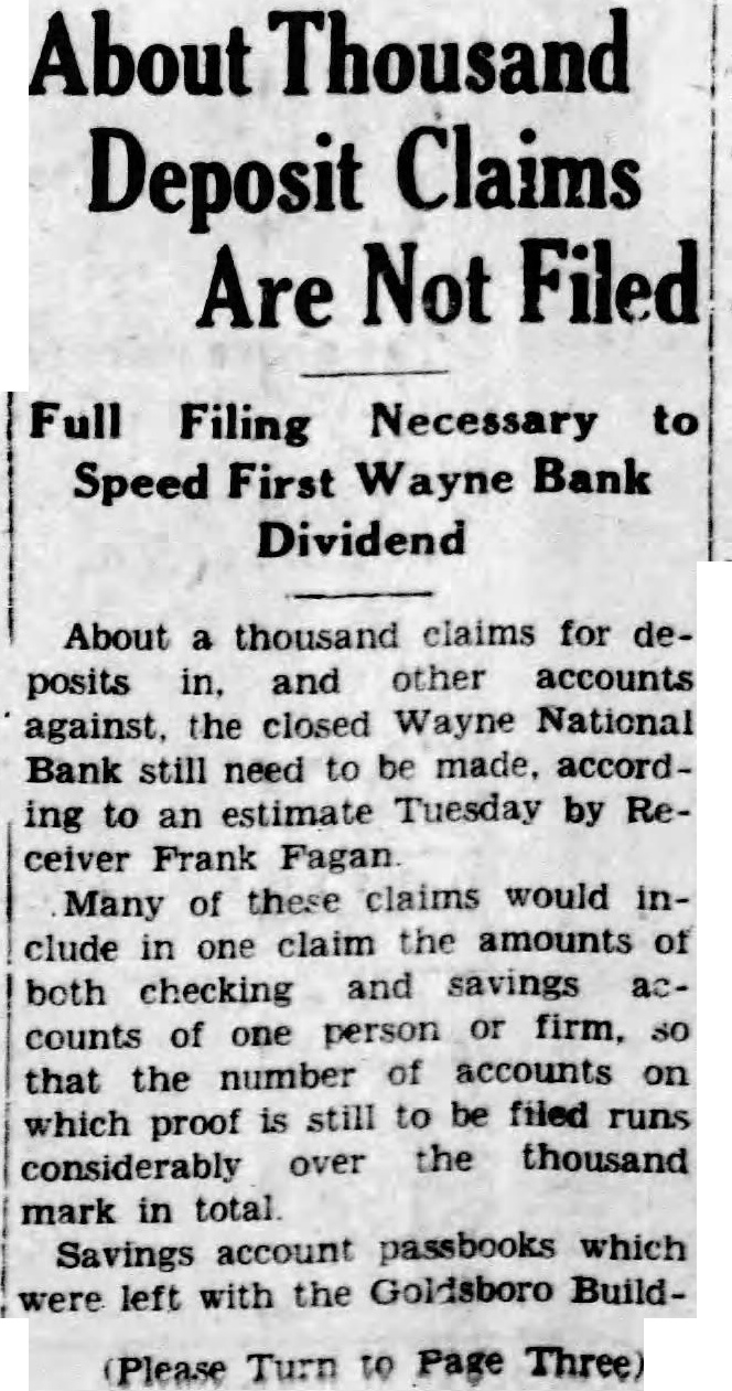 Z. V Langston And wife. 1 Lot on Atlantic Street Wayne National Bank. Receiver, J. B. Hooks, Administrator of the Estate of Lorenza Jordan, 1 Lot on Chestnut Street.