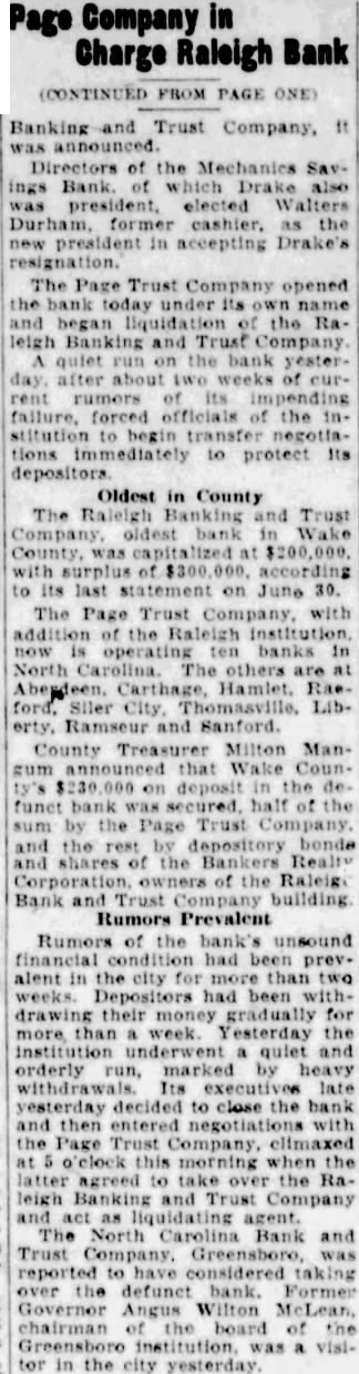 Budget for the city of Raleigh the beginning of the fiscal year July seem to be regarded virtual certainty, with ten per cent cut in all city salaries garded most likely. In addition there more than possibility of an increase of five cents in the tax rate, which last year was reduced to At suggestion of all the bankRaleigh, agreed yesterday taht president the Wake County Taxpayers' Association, and associates would effort upon reduction the city budget for the fiscal year. believe that satisfactory reduetions the budget will be that that done the banks Raleigh will supply the needs the city this time they have always the stated State Treasurer John Stedman. taken part in the negotiations between the bankers. city's financial affairs been greatly complicated by the fact that $150,000 tied closed and the further fact that $100,000 more was the defalcation former Tax Collector Hugh Lee. Taylor, head liquidating division of the State Banking Department said prospect dend this from the Raleigh year Banking and Trust Company the Bank, closed which the unsecured deposits. The city already borrowed $45,000 recovery bond the defaulting collec-