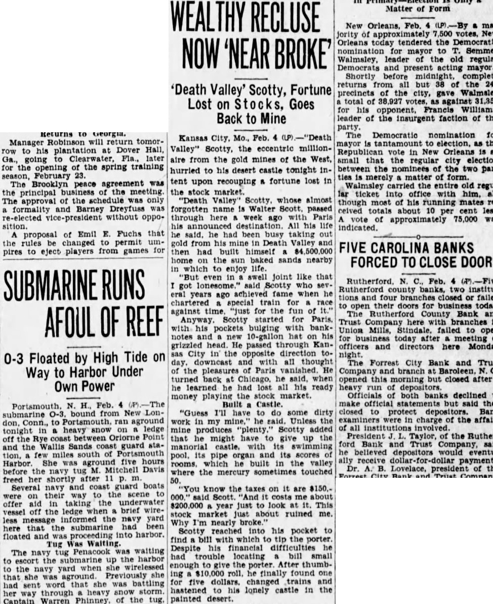 CLOSED RUTHERFORDTON, Feb. Rutherford county banks closed their doors this morn- The Rutherford County Bank and Trust company, at Rutherfordton, with resources over million dollars, and its two branches, at Spindle and Union mills, were closed. The convention notice, signed the board of directors, was affixed to the doors. declared th the banks had been put the hands of the state banking department for the protection of deposi*ors. run on the Farmers' bank and Trust company Forest City, believed by bankers to have been outgrowth the closing of the Rutherfordton Bank and branches, followed by called meeting directors of the Forest City institution 10 o'clock, and the closing of the bank, branch at Paroleen. The bank placed in the hands the state banking department, notice said. Examiners Sent Feb. men from the State Banking department were sent to this morning when John Mitchell, State bank examiner, notified that five banks in Rutherford county had closed.