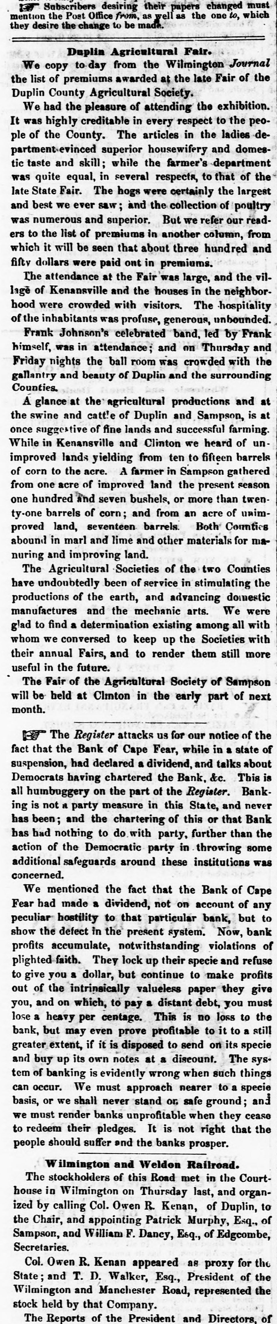 # News of the Day. NEW YORK, Oct. 6-P. M.-The Evening Post regards the aspect of financial affairs as favorable, and The Commercial of this afternoon discovers no material change from yesterday. The specie lost by the banks last week went to sustain other cities standing in more need of it than New York. The movement is regarded by cool-headed business men as exceedingly praiseworthy, though the croakers made use of the loss of specie for the renewal of the panic. Stocks were firmer after the adjournment of the second board. The payments at the sub-treasury to-day were over one million and a quarter of dollars, which is a very encouraging feature. NEW YORK, Oct. 8th. The day closed gloomily. Notes of the Central Bank at Brooklyn were discredited this morning. Books and papers of the Milwaukie and Mississippi railroad were issued to-day by the Sheriff at the instance of the President of the Milwaukie Bank. LOUISVILLE, Oct. 7th. Financial matters are gradually tightening throughout the West, and unless the bankers discount beyond prudence or relief comes from other sources, many good houses will fall from the 1st to the 3d proximo. That period is anticipated with terrible anxiety. NEW ORLEANS, Oct 8th.-To-day money is very tight. First class paper worth 2½ per cent. a month. No failures. No movement in the trade is possible until the sterling bills can bring cash in New York. The Banks are extending every facility to factors. All are cheerful. THE SOUTH-CAROLINA BANKS. We learn from one of the Charleston papers that the S. Carolina Bankscannot suspend without forfeiting their charters. They must pay through any run or pressure to the last dollar in their vaults. 'Before this result could be reached, with all its disasters,' says the Charleston News, 'the people of South-Carolina, who were never freer from embarrassment, could and would sustain them with such a large supply of agricultural products equal to specie, and convertible at once into sustaining credits or specie, that the resources of the banks could be realized to any needed extent' It was rumored in the city last evening, that the Bank of Wilmington, and the Bank of Cape Fear, at Wilmington, N. C., refused to redeem their notes yesterday. The Commercial and Bank of the State, however, it is said, did redeem all presented. Petersburg Express of Tuesday. All rumor and nothing else. Wil. Herald. BOSTON, Oct. 7. The steamer Niagara arrived this morning. She brings Liverpool dates to the 26th ult. There is nothing later from India. Harrison, Watson & Co., Bankers in Hull, have failed. Their liabilities are large. The Emperors of France and Russia met at Stuttgardt on the 25th. Mexico accepts the negotiations of France and England. The Emperors of Russia and Austria are to meet at Weimar on the 1st of October. It is rumored that Lord Elgin will soon be appointed Governor General of India. Russia is fortifying the Straits of Euikall. COMMERCIAL. LIVERPOOL, Sept. 26. The sales of Cotton for the week previous to the sailing of 'Niagara,' amounted to 29,000 bales-declined ½ - close quiet. Manchester advices unfavorable. The stock in port amounted to 297,000 bales including 206,000 American. Flour steady-inferior slightly declined; quotations barely maintained; Canal 31 a 32; Southern 32 a 33½s. Wheat dull, having declined 2d on inferior; red 7s6d a 8s2d; choice new 8s6d; white 9s a 9½s. Corn-mixed and yellow 37½ a 38; white 41½ a 43½. Naval stores steady. Spirits Turpentine 38¼ a 39. Sugar and Coffee declined 1d. Rice heavy -Prices easier, but unchanged. Money market active Rates of interest generally unchanged. LATE FROM CALIFORNIA. The Star of the West arrived at New York on the 4th, with 450 passengers and $1,250,000 in gold.-Senator Gwin and Hon. Henry S. Foote were among the passengers. The Hon. John B. Weller, Democrat, has been elected Governor of California. His vote was 40,000--Bowie, Know Nothing about 27,000, and Edward Stanly, black Republican, about 27,000. The people of California had voted by large majority to pay their State debt. Mr. Venable, of Tennessee, U. S. Minister to Gautemala, is dead. The list of lost passengers of the Central America, received by the Star of the West, comprises those only from the Isthmus. The list from San Francisco was expected by the next steamer. ST. LOUIS, Oct. 8th.-A gentleman arrived here to-day from Leavenworth, who left on Monday last at noon. He says that the election was proceeding slow. The Free State men had possession of the polls, and were casting all the votes; the same case at Delaware. It is conceeded that Parrolt, the Black Republican, would beat Ransom for Congress. No disturbances up to noon. AUGUSTA, GEO. It is admitted here that the election yesterday has resulted in the election of Brown, dem., for Governor, from eight to ten thousand majority. The returns also indicate the re-election of Mr. Trippe, American, to Congress; Joshua Hill, American, in the 7th District, and Messrs. Crawford, Gartrell, A. H. Stephens and Wright, Democrats, in their respective Districts. Little has so far been heard from the 1st and 6th Districts. REV. LOUIS SKIDMORE. We have the mournful duty of announcing the death of this venerable servant of Christ. He departed this life at his residence in Charlotte county, Va., on Thursday, the first of present month. Few ministers have been better known in Virginia and North Carolina; or, in former years exerted a great influence, than the Rev. Lewis Skidmore. For some years past he has been in retirement, owing to age and infirmity. But he he has labored for Christ as his strength allowed. He died calmly, trusting in mercy and merits of the blessed Redeemer for rest in the world beyond the grave. Richmond Advocate PRICES OF COTTON. There will doubtless be great disappointment throughout the cotton growing States at the fall of that staple. Here it has gone down from 15½ to 13 cents and the market is very dull. In New York the Journal of Commerc