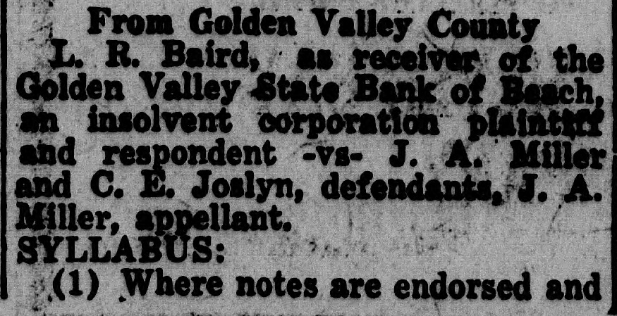 From Golden Valley County L. R. Baird, as receiver of t Golden Valley State Bank of Beach an insolvent corporation plaint and respondent -VS- J.A. Mil and C. E. Joslyn, defendants, J. Miller, appellant. SYLLABUS: (1) Where notes are endorsed a