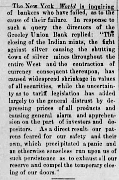 Also National Banks of Tennessee, Texas and Wisconsin Forced to the Wall. LOUISVILLE, KY., July 22.-The Kentucky National Bank, of this city, closed its doors this morning. The capital stock is $1,000,000. paid up. This bank is also a Government depository, and its last statement show $190,000 to the credit of the Government The loans and discounts outstanding amounted to $1,719,366, and the surplus was $108,500. It is thought that the bank will be able to resume business in a short time. It has been carrying an immense amount of paper, which, although gilt edge, could not be realized on. The bank is the Government depository, and in the statement of the bank. published July 19th, the Government's deposits are placed at $191,731. Deposits of the United States disbursing officers, $138,268. According to the statement, the amount of cash on hand July 19th was a little over $85,000, Individual deposits subject to check of $311,693. and the loans and discounts were $1,719,966. The bank got into serious trouble in the fall of 1890, by having very heavy deposits from the country banks. which were checked so rapidly as to threaten a suspension of the bank. It has never recovered from that trouble, and its failure has been expected for several months. No other banks are hurt. The Kentucky National Bank was a United States depository, and has Government deposits amounting to about $300,000, and its inability to make prompt transfers on this account was the immediate cause of the suspension to-day. During the past three years its surplus has been changed off from $300,000 to $100,000. The officers and directors do not expect to resume for some time, if at all, and it is generally thought that it will not resume at all, unless it should be entirely reorganized. ⑉ Bank Examiner Escott b-right authorizes the official statement that he has examined all the national banks in Louisville, and its vicinity, and they are all solvent. and most of them in very good condition. Future trouble is not expected, unless the small depositors, mainly Germans, become frightened over Sunday and start runs on the banks having large numbers of small depositors. KNOXVILLE, TENN July 22.-The State National Bank closed this morning after opening four minutes. notice was posted on the door saying: "This bank has closed for liquidation. Depositors will be paid in full. The State National Bank, of this city, closed its doors this morning. The bank has long been known to be the weakest in the city. Yesterday, when $20,000 in deposits were withdrawn. it was more than it could stand. A meeting of the directors was held last night. An offer of $40,000 to pay depositors should a run occur to-day was made by other banks. The offer was not accepted, however. When it opened for business this morning a run was precipitated, which only lasted a few minutes, as the bank closed its doors for liquidation. A notice on the door says it will pay depositors dollar for dollar. The stock holders will also receive 85 cents on the dollar. It was feared that the closing of the State National would cause a panic in Knoxville financial circles, which have heretofore been considered very strong. A slight run was only made on the City National Bank, which is just opposite the street, but depositors were paid in full. The scare was soon over. There is no more uneasiness felt here. LAMPASAS, TEX., July 22. The private banking house of J. & L W. Galbraith failed to open its doors yesterday, having made an assignment to Camp bell. Liabilities, $60,000; assets, $120,000. A run on the First National Bank was started, but it was fortunately in position to withstand all demands. The depositors in the Galbraiths' bank will be paid in full. DENVER, COL., July 22.-On petition of the General Electric Company, Judge Hallett, in the United States Court to-day appointed E. B. Shattuck, of Pueblo, receiver of the Pueblo City Railway Company and the International Trust Company. The liabilities of the company are placed at $700,000. VERNON, TEX. July 22.-The State National Bank or Vernon closed its doors yesterday. Every cent of money was paid out. except ten cents, before the doors were closed. The failure is due to the inability to realize on securities. The directors state that depositors will be paid in full. MILWAUKEE, WIS. July -The Milwaukee National Bank closed its doors this morning. MILWAUKEE, WIS., July 22.-The Southside Savings Bank did not open its doors this morning. TOPUKA, KAN., July -The First National Bank of Anthony closed its doors yesterday. Assets, $154,000; liabilities, $50,000. MEMPHIS, TENN., July 22.-The Citizens' Bank, of Jellico, Tenn., the only banking institution in that place, failed to open for business yesterday. GREELEY, COL. July 22. The Union Bank made an assignment yesterday. It is thought the step was voluntarily taken to avoid a contingency that might arise should some creditor take advantage of the attachment law. The bank is perfeetly solvent, and not one depositor will lose a dollar. RUSSELL KAN., July 22 The First National Bank, of this place, closed this afternoon, and was taken possession of by C. M. Sawyer, on the order of the Comptroller of the Currency. No statement is made. Run on a Homestead Bank. HOMESTEAD, PA., July 22.-A run of mada on the