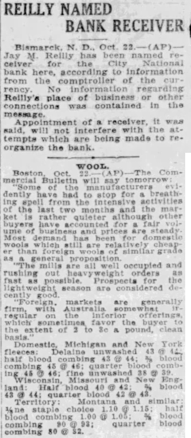 Bismarck, N. D., Oct. 22. Jay M. Reilly has been named receiver for the City National bank here, according to information from the comptroller of the rency. information Reilly's place of business or other connections was contained in the of was with attempts which are being made to organize the bank.