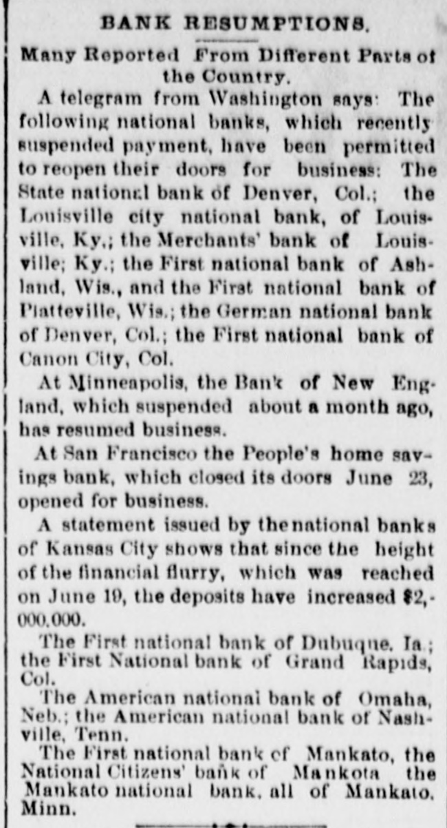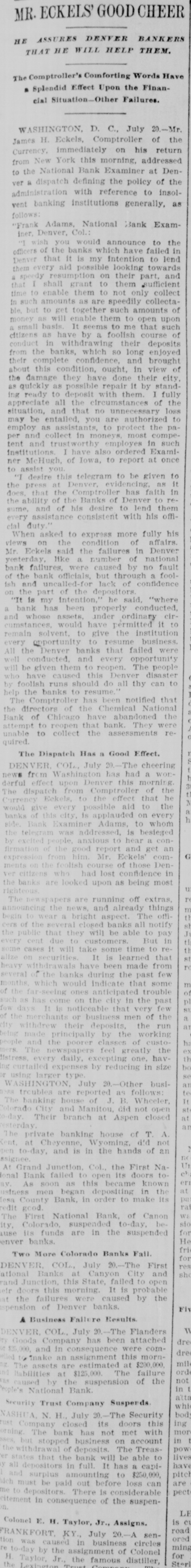 ALL the banks at Gutherie, Ok., are experiencing runs.