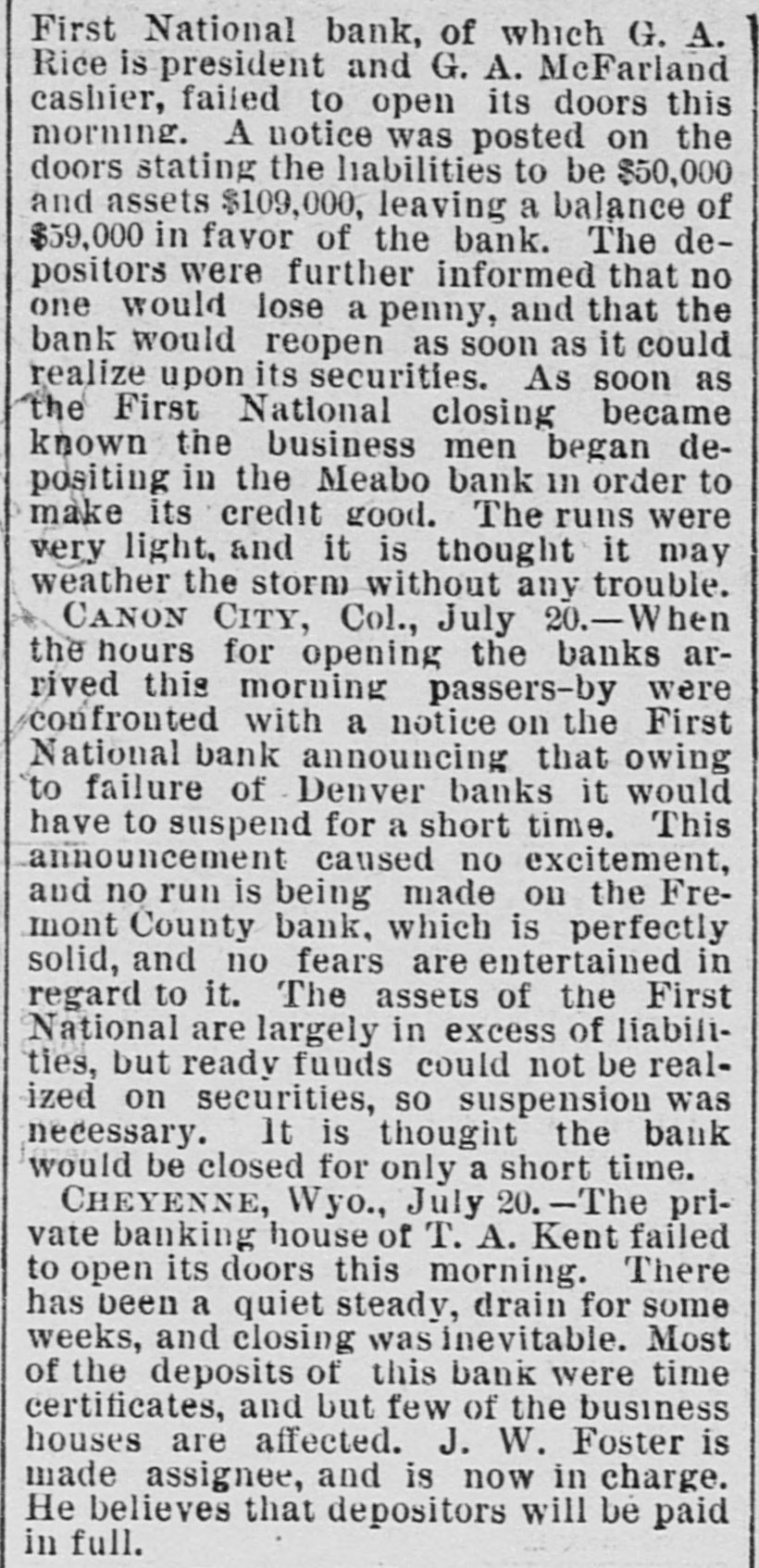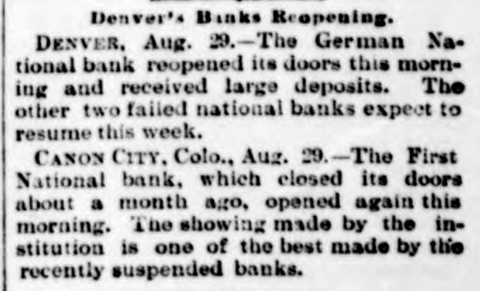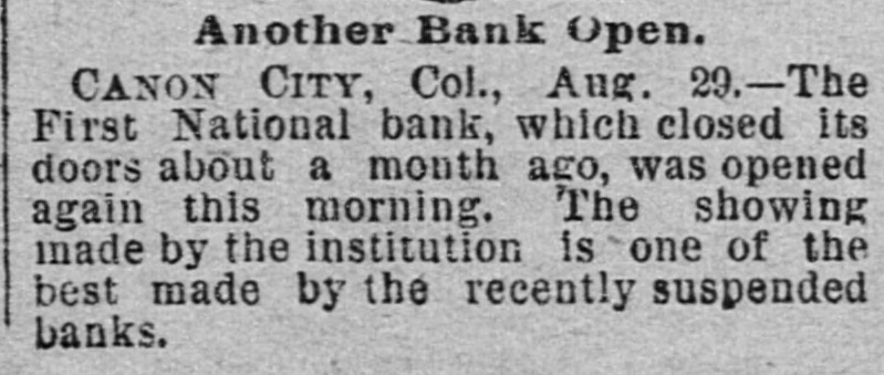 THE First National Bank at Cannon City, Col., and the First National at Grand Junction, Col., have failed.