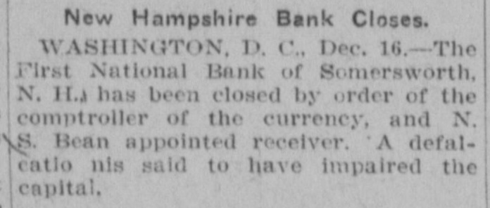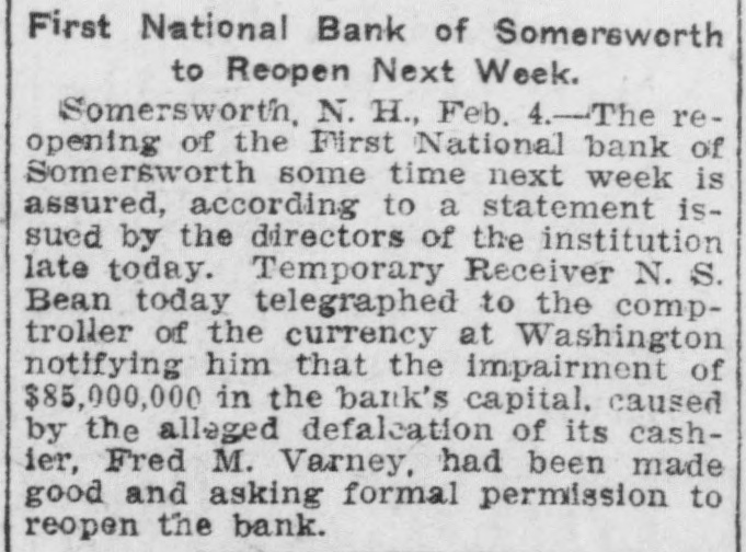 FINANCIAL Jan. 2-State Bank, Rockyford, Col., closed doors. 6-Four big New York diamond firms forced into trustee's hands; liabilities, $4,500,000. 8-Chicago Great Western railroad JOHN placed in hands of receivers. ROCKEFELLER 16-Western Bank and Trust Co., Dallas, Tex., largest Texas saving bank, placed in receiver's hands. 18-John R. Walsh, president Chicago National bank and several railroads, convicted of misappropriating institution's funds. 21-Capital State Bank, Boise, Idaho, suspended. 22-Traders and Mechanics' Bank, Pittsburg, Pa., closed doors. 25-National Bank of North America, New York, closed for liquidation, by order of government. 29-New Amsterdam National bank, capital $1,000,000, and Mechanics and Traders' bank, both of New York, taken in charge by comptroller of currency. 31-Oriental Bank of New York closed doors, following run. Feb. 13-W. B. Ridgely, comptroller of currency, accepted presidency of reorganized National Bank of Commerce, Kansas City, Mo. 26-International and Great Northern Railroad Co., a Gould line, placed in receivers' hands. 27-Financiers E. R. Thomas and O. F. Thomas indicted on charge of mismanagement of funds of Provident Savings Life Assurance society. Mar. 13-John R. Walsh denied new trial; sentenced to five years in federal prison. 16-People's National bank, Aspin, Col., closed. Apr. 1-Pike County Bank and Trust Co., Macomb City, Miss., placed in receiver's hands. 21-Bank of Wauseon, Wauseon, O., closed doors. 24-T. A. McIntyre & Co., with houses in many cities, failed for $1,000,000. May 8-Euclid Avenue Trust Co., Cleveland, O., assigned. 14-Reserve Trust Co., and American Savings bank, Cleveland, O., closed their doors. 28-G. W. MacMillen & Co., Pittsburg, Pa., stockbrokers, failed; liabilities, Jun. $1,800,000. 3-Kosciusko Company bank, Warsaw, Ind., closed by state auditor. 23-Citizens' bank, Dover, Ky., closed Jul. doors. -National Deposit bank, Philadelphia, Pa., closed by comptroller of cur17-Farmers rency. and Merchants' Banking Co., Cleveland, O., failed. 22-Standard Oil $29,240,000 fine dectsion unanimously reversed by United States court of appeals at ChiAug. engo. 6-First National bank, Belle Plaine, Minn., closed by order comptroller of currency; bank was insolvent; President J. G. Lund committed suicide. 25-A. O. Brown & Co., one of largest New York brokerage firms, failed; liabilities over $1,000,000. Sep. 10-A. Booth & Co., largest fish house in country, forced into receiver's Oct. hands. 16-Union National bank, Sommerville, Pa., closed by government. Nov. 5-Charles W. Morse and Alfred H. Curtis, great financiers, found guilty of misapplication of funds and falsifying books of National Bank of America, New York. 6-C. W. Morse sentenced to 15 years; Curtis given liberty on suspended sen23-Eldred tence. bank of Eldred, Pa., suspended; capital stock, $100,000. Dec. 7-National exchange bank at Springfield, Mo., closed; excitement caused by effort of W. O. Oldham, cashier of State Savings bank, to shoot President H. B. McDaniel, of Union National bank. 11-Springport, Mich., State Savings bank closed by bank examiner. 16-Somersworth, N. H., First National bank closed, following discovery of shortage of $85,000. 23-Thomas F. Ryan announced retirement from finance. 26-Henry W. Poor, New York broker, assigned for creditors.