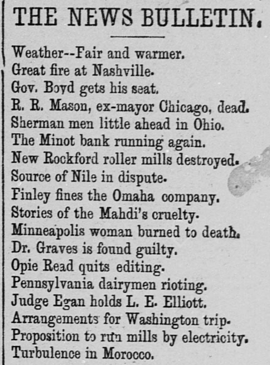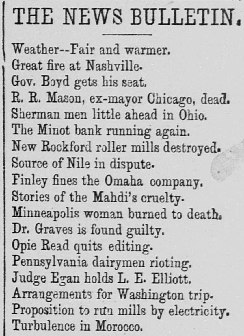 "I will say, as I stated here last spring, that if Blaine is nominated for president, and some man like Knute Nelson for governor, Minnesota will surely go Republican next fall. I think that the leaders of the Alliance movement are still on deck and using every effort to make it a success, but a large part of the rank and file of the Alliance are not as enthusiastic as they were in 1890, and it is my opinion that when the votes are counted next fall there will be good many more Republican and Democratic votes and fewer Alliance votes. In many places I have found that local issues have split the Alliance party. In my opinion the result of the next election in this state will depend largely upon the nominations made by the several parties."