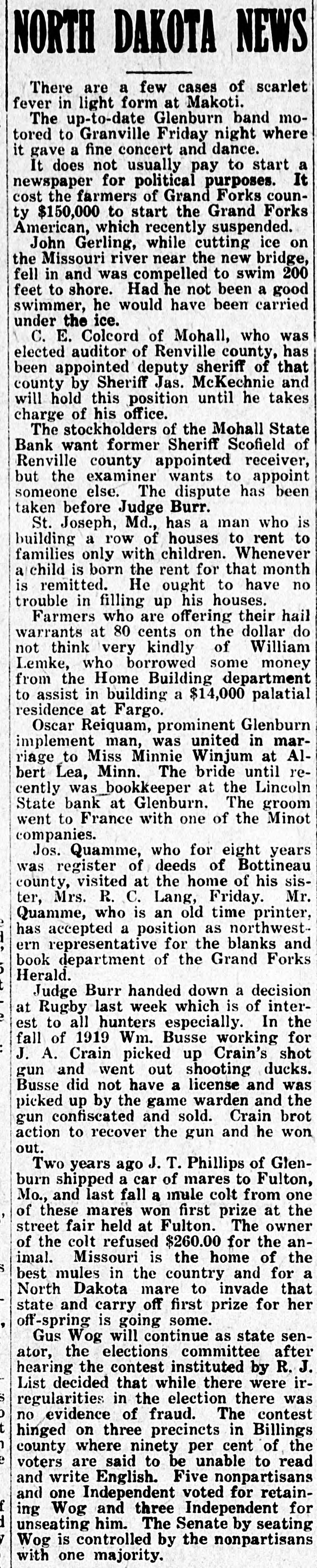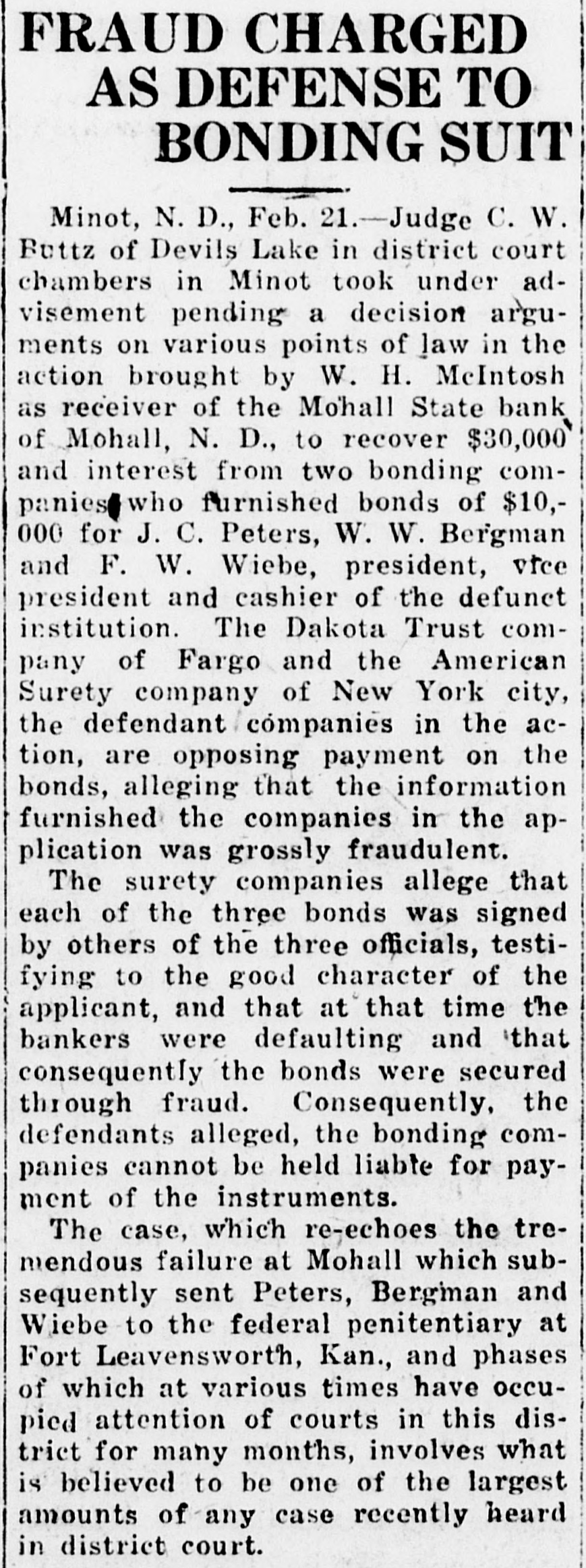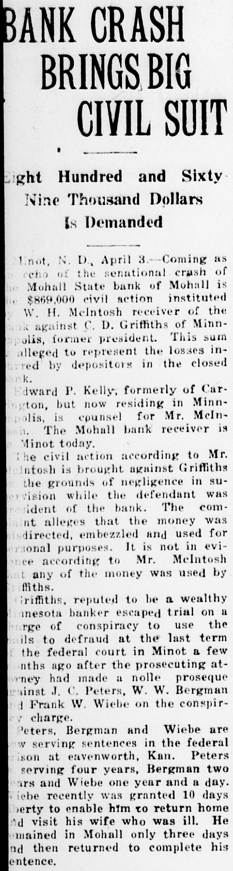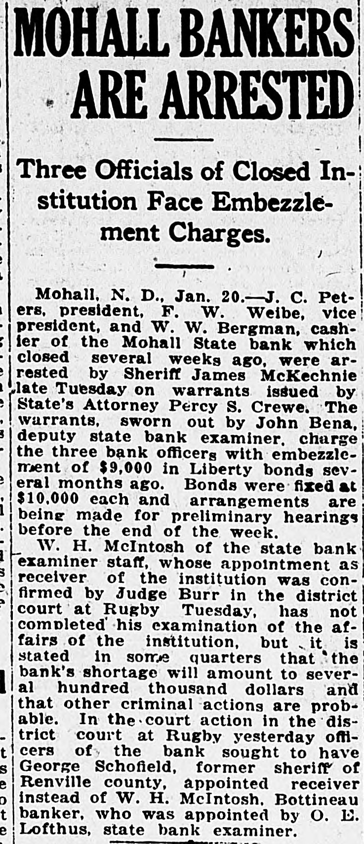 Grain. Chicago.-Accepting the government's figures on crop and carry-over from and assuming home consumption is at prewar rate, we find about 70,000,000 bushels of wheat remaining for export in the next seven months. New export business is averaging around 1,000,000 bushels daily. This is not a comfortable showing for those who believe that deflation is not yet complete.-T. & M. Chicago.-Julius H. Barnes, former president of the United States grain corporation. who was in Chicago yesterday, said: "I think we have seen worst of the liquidation in the grain markets, security and commodities markets. I do not see anything especially bullish in the wheat situation, but the apprehension regarding the grain and commodity markets has placidly subsided. The export situation is healthy. Sales running around 1,000,000 bushels per day on the average. However, we have not as yet used up our exportable surplus owing largely to the fact that domestic consumption is smaller than usual this season. Chicago.-Estimated today hogs left over 14,356. Average price hogs yesterday $9.90 against $12.45 week ago and $13.20 year ago.-C. C. & Co. Grain receipts-Duluth. wheat, 291; Minneapolis, wheat, 495; Winnipeg, wheat, 884; Kansas City, wheat, 155; corn. 21; oats, 1. St. Louis-Cars: Wheat, 42 local and 45 through; corn, 31; oats 27 local and 18 through. Chicago-Very little doing in hogs; bidding sharply lower: one load choice medium butchers. $10.00; quality fairly good.-Wagner to Shepard & Gluck. Chicago.-Private bank at Homer, III., in heart of corn belt, has failed for $280,000. One report says 5,000,000 pounds of January lard was bought Monday by packers. January ribs at $12 and January lard at $14 represent around $9 hogs. Western hogs dropped 50 cents to $1 and are around a $9.90 average.-Wild to Shepard & Gluck. Omaha.-Hogs 50c lower. Chicago.-Local fresh pork resumed its downward course this morning with a drop of 2 to 3 cents per pound. Pork loins at 32 cents are lowest for this cut since the early war days. Chicago.-United Kingdom: Reduction in wheat prices by the wheat commission is expected shortly. Merchants here are able to offer at prices below official rates. Chicago.-Cargo of 150,000 Canadian dark No. 1 spring wheat arrived at South Chicago yesterday. Chicago.-Bartlett Frazier out with opinion that country banks are loaded and farmers must sell corn. The very weak opening in grain has led to some lack of confidence on part of break buyers.-Wild. Chicago.-Winnipeg wires: Lots good buying November wheat. Must have been business worked some place.Wild to Shepard & Gluck. Chicago.-Main cause of break and selling at opening was caused by following message before opening: "There are 300,000 barrels of flour here at Philadelphia, three elevators in distress and losses terrific and final draft on unpaid much more to arrive. I understand same conditions prevail in other terminals. It will break up a lot of mills.-O'Brien to McFall. Minneapolis.-Mohall State bank, Mohall, N. D., closed. Chicago.-Wild says: On account of big receipts Friday believes March wheat will sell at $1.47 and May corn at 70c. Chicago.-New York wires 2,000,000 wheat worked to Spain and Italy. Chicago.-Thomson McKinnon's Wichita, Kas., office wires: "A plan of advancing farmer a dollar a bushel on wheat with contract that he can deliver now and sell any time he wants to have been adopted by large line elevator houses and mills. This will move considerable wheat and stop lot of talk about foreing farmers to sell." Stock. New York-National City bank, New York, places $10,000,000 at disposal of Cuban sugar planters. Great pressure be brought on congress next month for immediate legislation to aid business, tax reform and foreign trade promotion up; shoe prices cut ZU per cent in St. Louis; United States government holds over-$11,000,000,000 of foreign securities. Wall Street Journal: Reading road orders 20,000 tons of rails; Gary says business conditions are good, no panic in sight, smaller profits ahead, labor 85 per cent unorganized. New York-1A leading banker expressed opinion that big liquidation is over. He acknowledged there are two or three sore spots in the market; says that these will be undoubtedly taken care of.-Hensley.