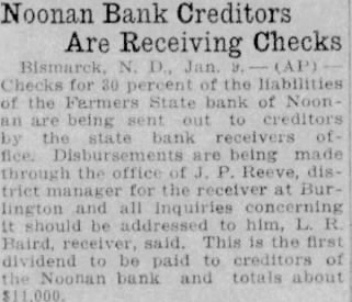 Noonan Bank Creditors Are Receiving Checks