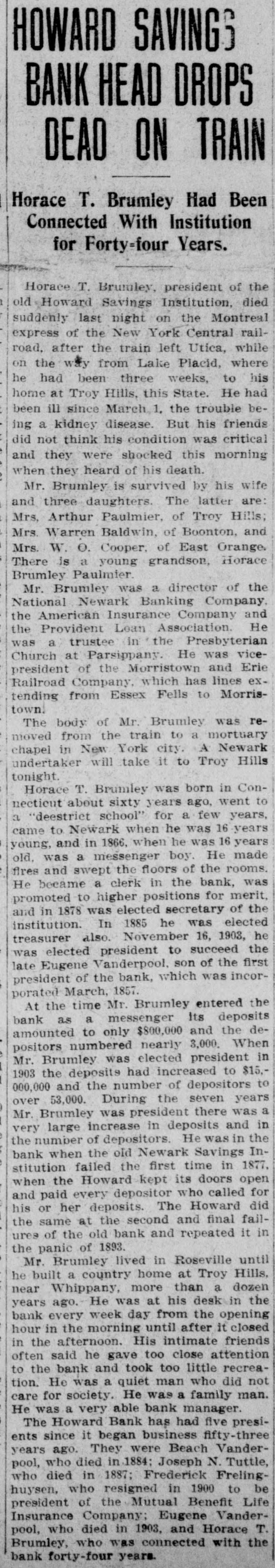 THERE was a run on the Howard savings institution at Newark, N. J. The bank weathered the storm.