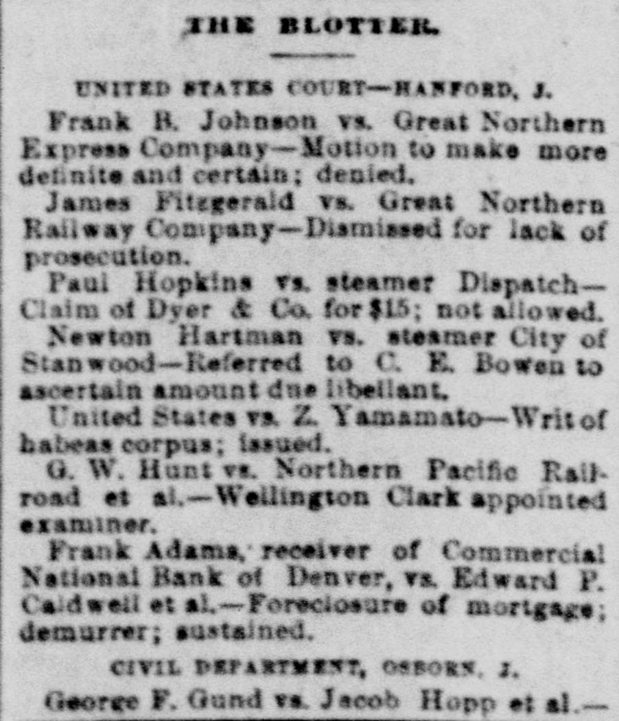 R. R. Dunbar has brought suit to recover 328 acres of land in the city of Argentine. The land contains residences and business houses, among the latter being the largest smelter in the world. The suit is based on a number of old Indian deeds and the principal claimant is an Indian from the territory.