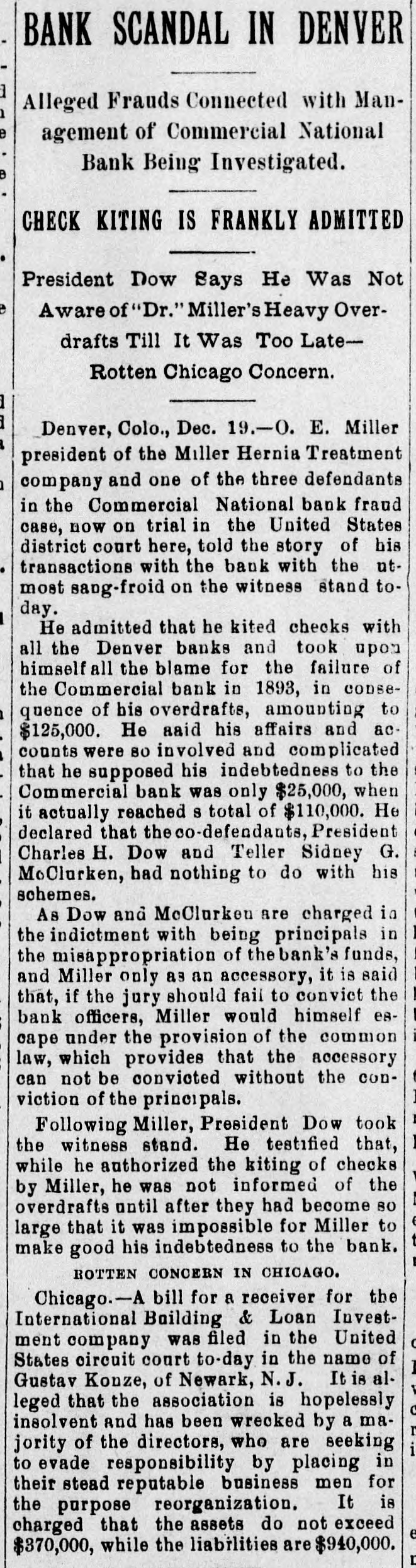 A big suit was filed in the United States court at Topeka the other day by the attorneys of Frank Adams, receiver of the Commercial national bank, of Denver, who asks for a judgment of $41,000 against the Western Farm Mortgage Trust Co., of Law-