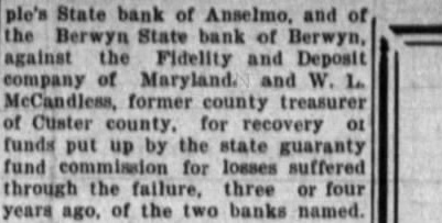 New Sale Is Ordered of Anselmo Bank's Assets Lincoln, Sept. 12.-The state bank. ing department announced today that the guarantee fund association and the banking department had objected to the sale in court at Broken Bow of assets of the failed Peoples State bank of nselmo, Neb., because the assets, consisting of papers and real estate, said to have been valued at 72,000, had been made by Receiver Emery F. Bush for 4,756 for the paper and 3,000 for the real estate. C. McKay, insley,A Neb., buyer of the failed bank's paper assets; John David, buyer. of the real estate assets, and Mr. Bush, the receiver, will be notified that a new sale is to be held, the banking department announced.